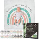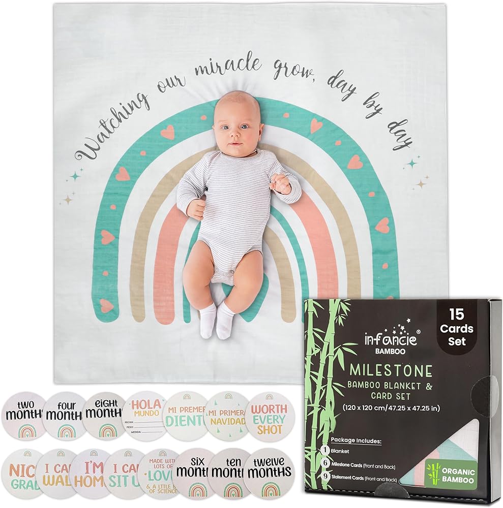 بطانية قماط Bamboo Organic Bamboo (120 x120 سم) - 47 × 47 بوصة مع 6 بطاقات معلمة و 9 بطاقات بيان | بطانية تعقب نمو الأطفال للبنين والبنات