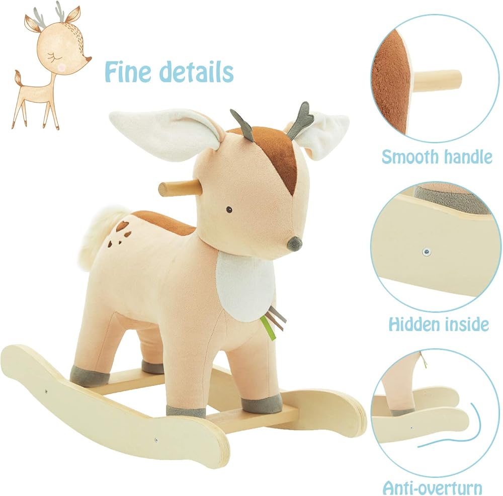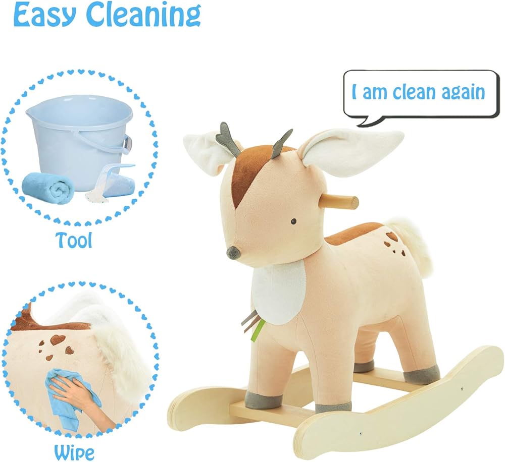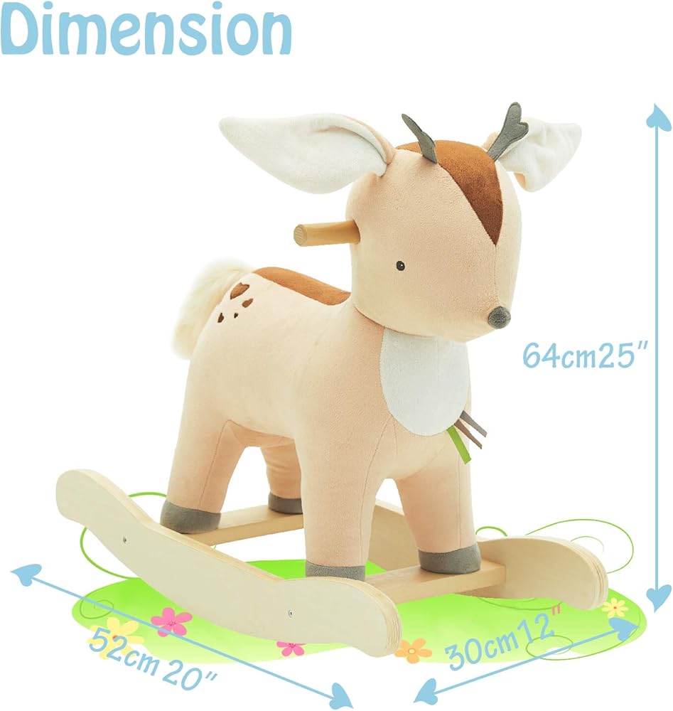 اشتريت هذا المنتج لطفلي البالغ من العمر 6 أشهر وهو لطيف للكريسماس. إنها تحبه!! هناك ظهر قوي عليه وهو أحد الأسباب التي جعلتني اخترت هذا الحصان الهزاز، فهي لا تزال صغيرة جدًا للوصول إلى الأرض، ولكن بمساعدة تحب الهزاز. تصدر الأذنين صوت خشخشة مما يجعلها تضحك. هذا الحصان الهزاز مثالي للأطفال في مرحلة النمو.