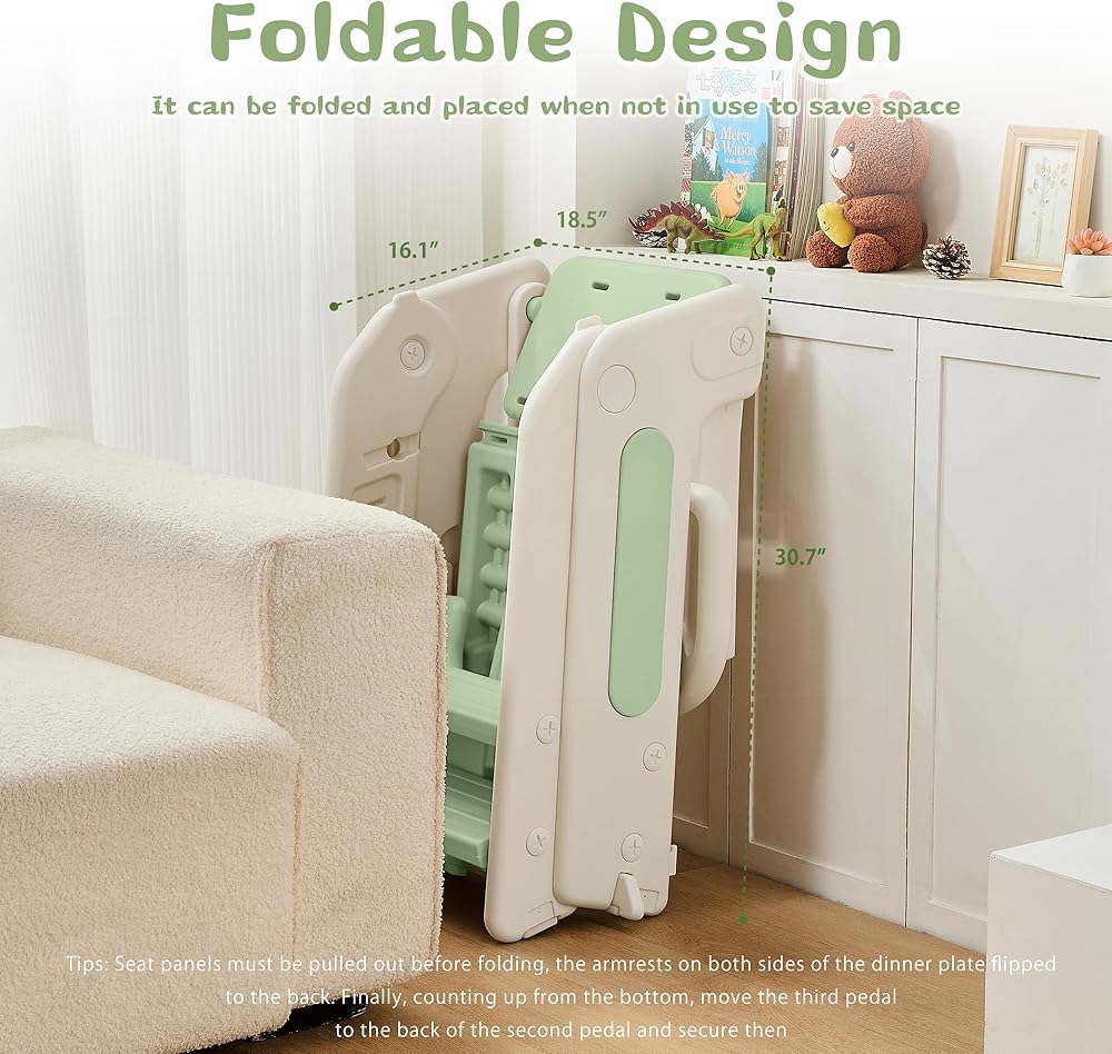 • وظيفة قابلة للتعديل: يمكنك ضبط التروس مع زر القفل في أسفل الدرج لوضع طفلك في وضع الجلوس الأكثر راحة. يمكن أيضًا تحويل برج الطفل إلى مستويات 2 أو 3 اعتمادًا على ارتفاع الطفل