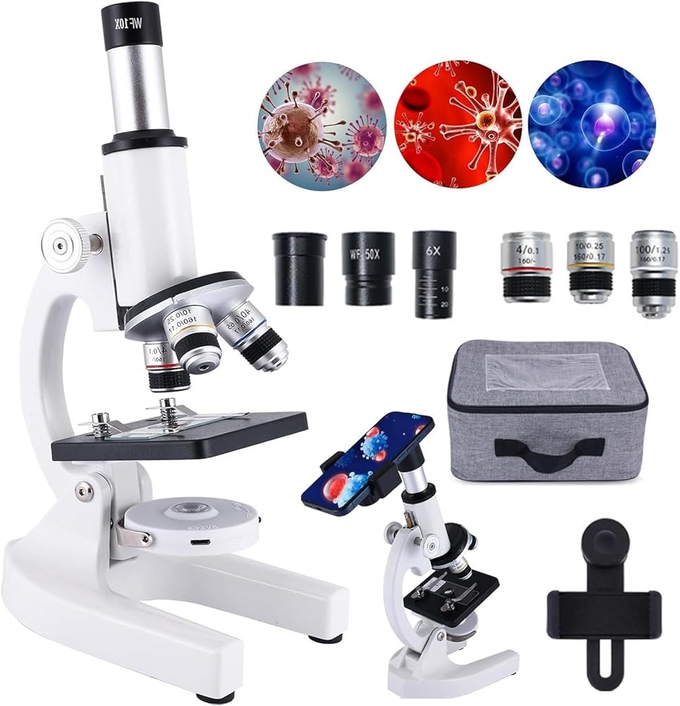 • 【HIGH MAGNIFICATION】compound microscope 3 achromatic objective lenses (4X, 10X, 60/100X) eyepieces(10X, 50X, 4X Multiplier).microscope for kids Professional achromatic objective lens imaging clearer and richer chromatic aberration wider field of view.