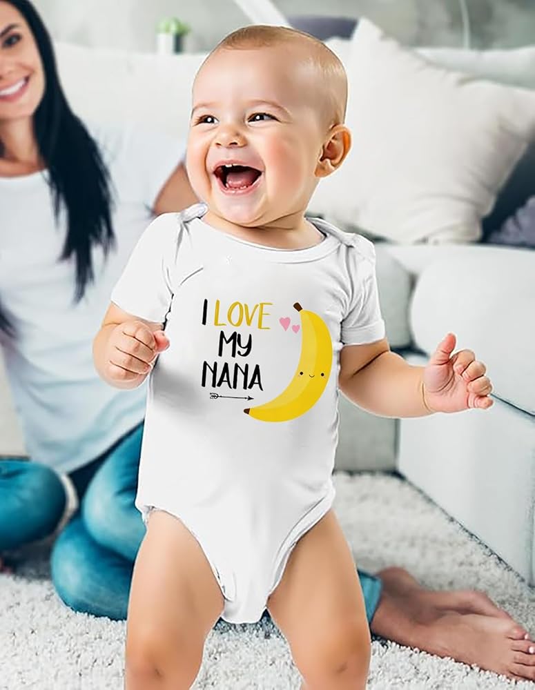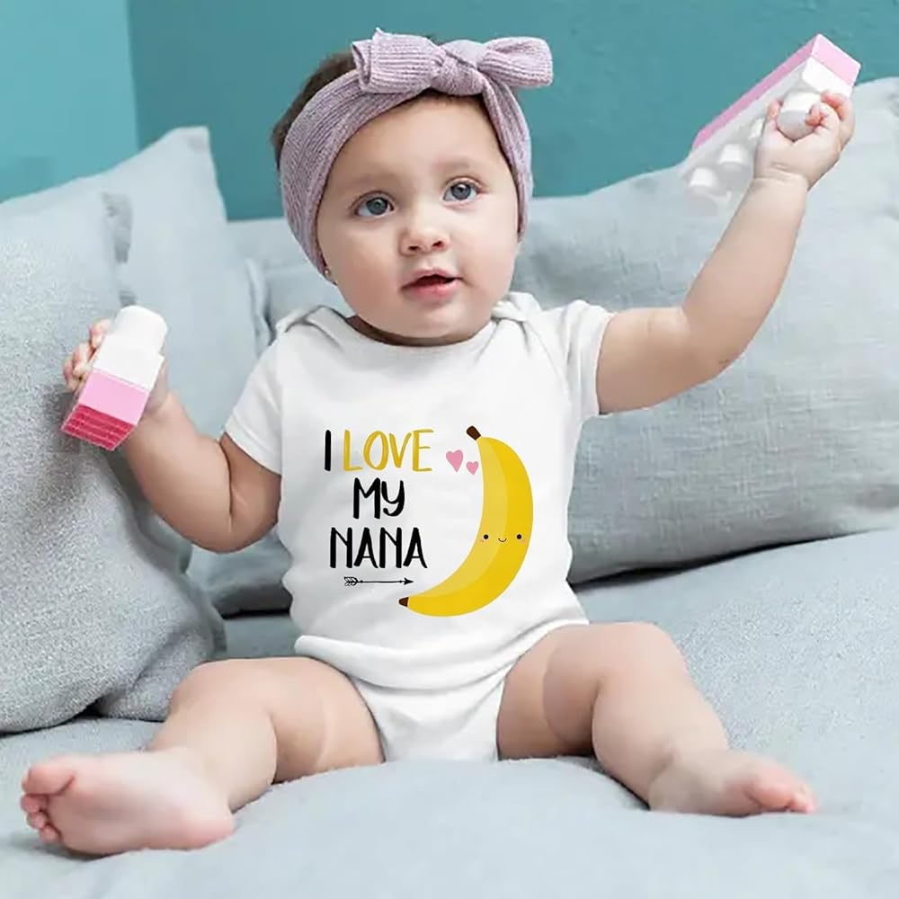 Kreleurs I Love Papa NANA Funny Letter Print Baby Comming Soon Baby BodysuitAnnouncements Short Sleeve One-piece Infant Romper