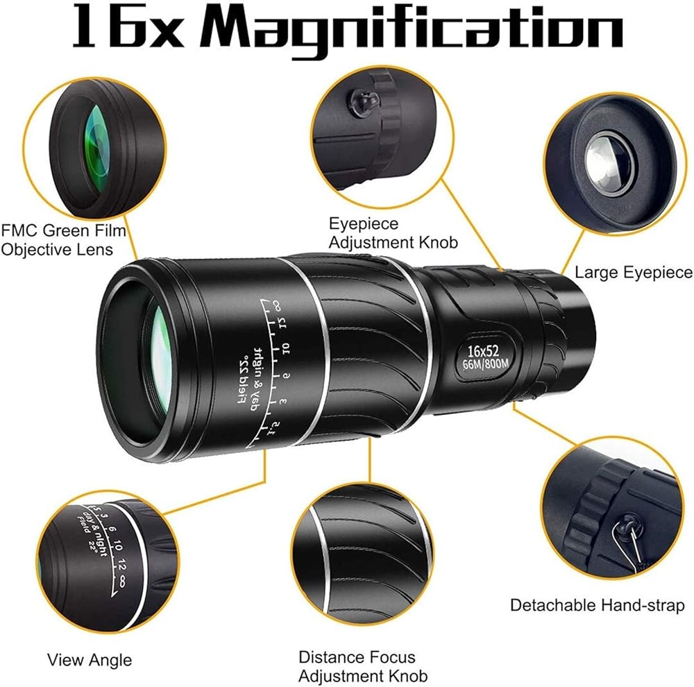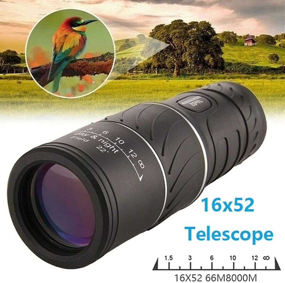 أحادي الصبغة تلسكوب عالية الطاقة تلسكوب أخضر الفيلم البصري عالية الطاقة تلسكوب أحادي العين 16x52 نطاق التكبير طويل المدى - أسود لمشاهدة الطيور البالغة مناظير في الهواء الطلق في الهواء الطلق