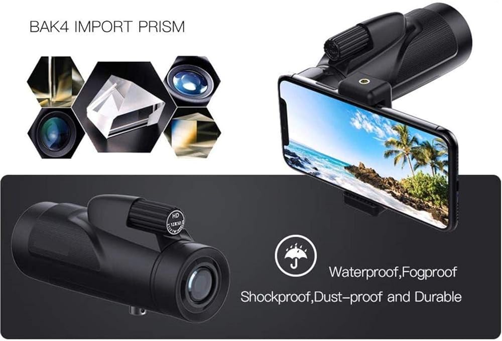 Waterproof Monocular: This HD waterproof, fog-proof, dust-proof, shockproof monocular, built in lens dust cover and o-ring sealed optics could prevent lens from dust/moisture/debris, ensures the living waterproof function, fit for the most weather and environment(note: it can not be used in a heavy rain for a long time or soaked in the water)