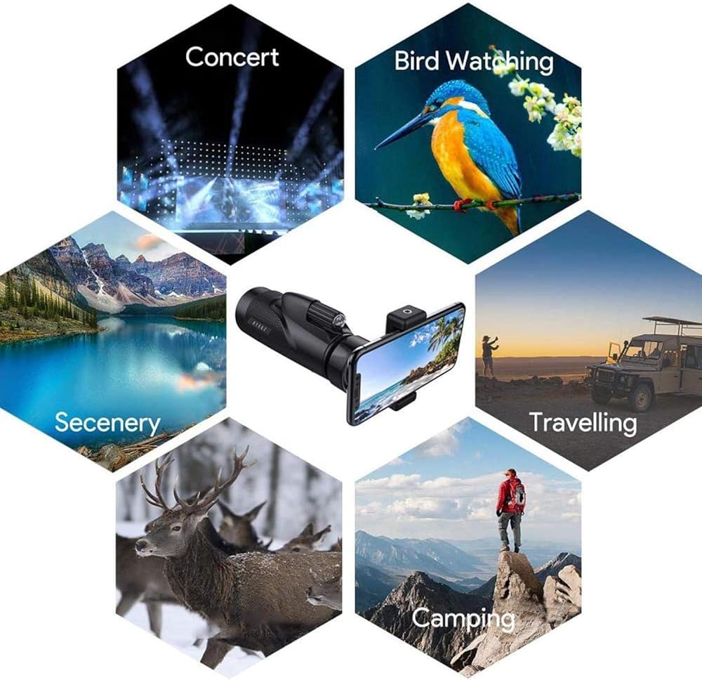 High Contrast and Resolution Images: The optics technology, the HD monocular telescope equipped with BAK-4 prism and fully muti-coated lens, superior light transmission and brightness and the light transmittance reaches up to 99.5%. Our monocular has low-light-level , it could help you see things in low light (can't see anything in complete darkness), provide you a amazing viewing