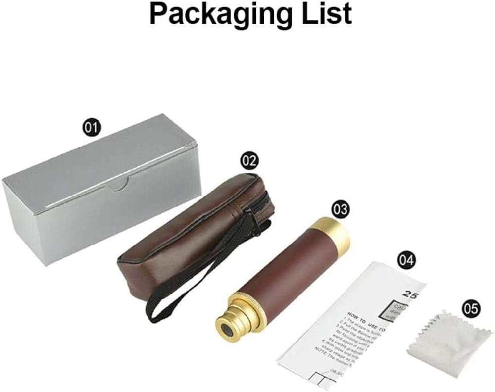 long-lasting: The main components are long-lasting aluminum alloy gold-plated, while the handheld components are covered with long-lasting leather. This compact monocular will be your travel companion. The compact and lightweight foldable eyepiece is easy to store, and the included bag is easy to carry with one finger.