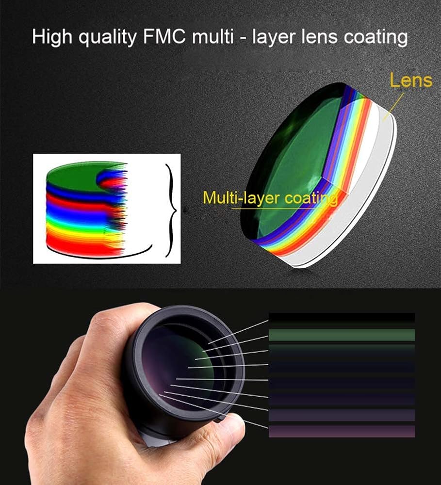 HD Clear Sightviewing: Telescope use omnidirectional multi-layer Lens Coating and large BAK-4 Prism,High light transmittance reaches up to 99.5%,make your view brighter/clearer and delivers crisp images