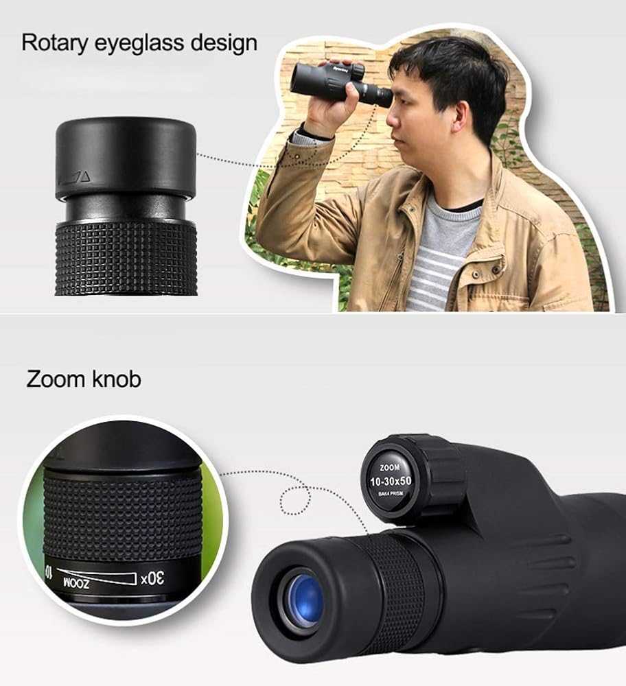 Completely waterproof and anti-fog, prevents moisture, dust and debris from entering the monocular design, which prevents fogging inside