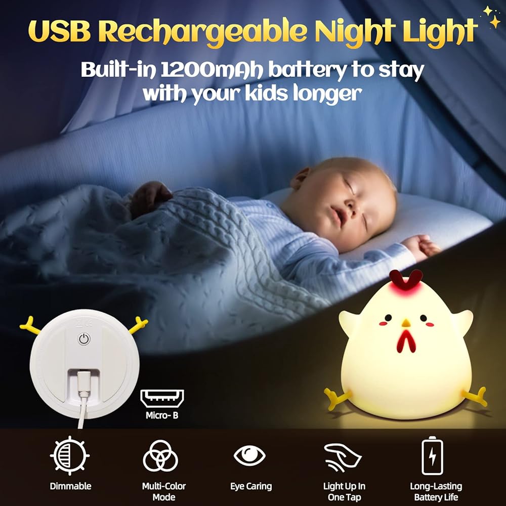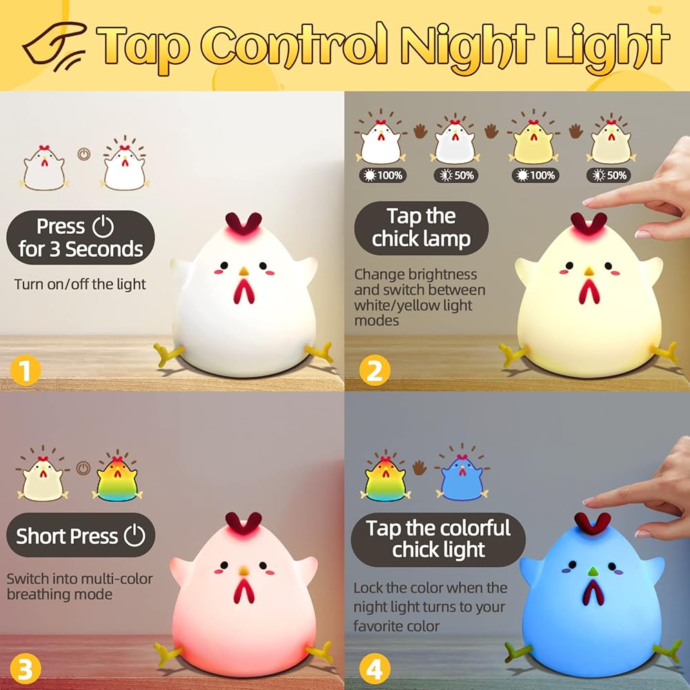 【Safe Night Light for Kids】- Our adorable chick-shaped kids night light is crafted from premium soft silicone. The smooth surface and rounded edges provide a comfortable and safe touch for little hands. The durable silicone material is designed to withstand accidental drops, ensuring it won't easily break or shatter, peace of mind for parents.