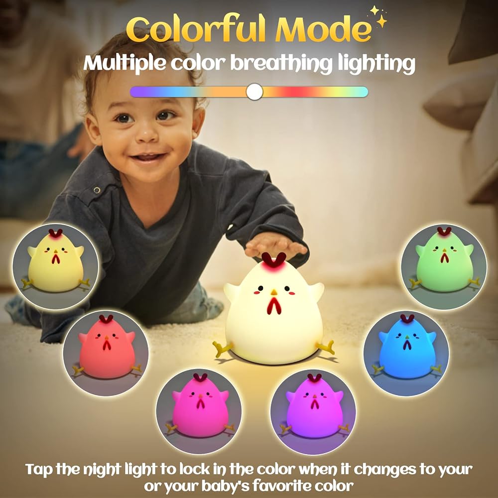 【Vibrant Colorful Modes】- Our cute night light features multiple-color mode that can be easily locked to your child's favorite color with a simple tap. Let their imagination soar as they enjoy the mesmerizing display of bright and vivid colors, creating a soothing and magical atmosphere in their room, great room decor for kids.