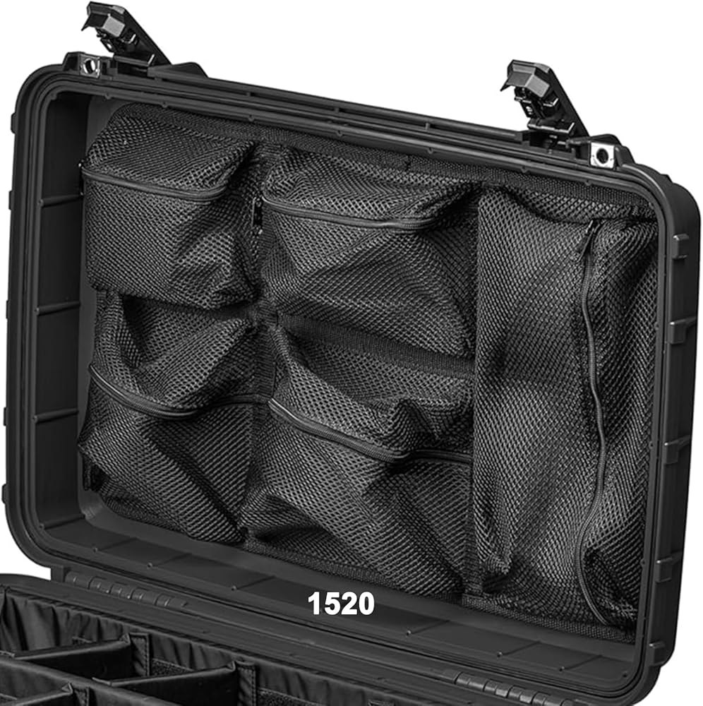 Enhanced Organization: The Lid Organizer measures 18.10 x 12.93 inch. Lid Organizer for hard case offers multiple pockets and compartments, allowing you to neatly store and organize your smaller items within the case. Our lid organizer for the Pelican 1520 helps keep everything in place and easily accessible, eliminating the hassle of rummaging through a cluttered case.The Lid Organizer provides a convenient way to organize and protect your camera accessories and other important items.