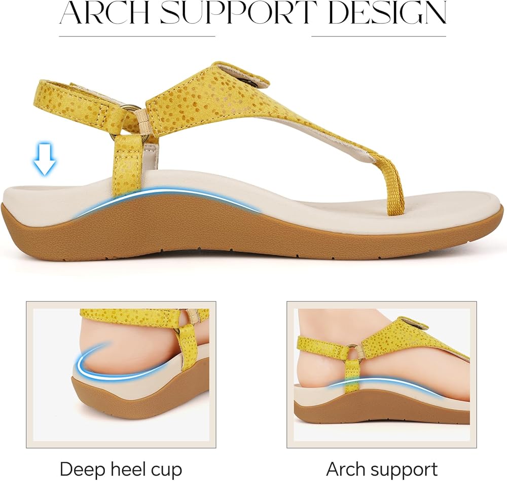 【Great Arch Support】 The ERGOfoot arch supports flat sandals and is ideal for people suffering from plantar fasciitis. They have been designed with an orthopedic footbed and a deep heel cup, to provide heel support and maximum arch support, which makes walking very comfortable and easy. And will help you in getting rid of your foot pain, arch pain, and heel pain.
