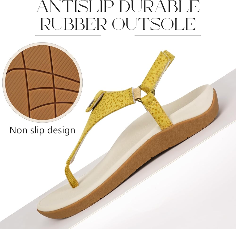 【Adjustable Thong T-Strap】 These comfortable women's orthopedic sandals are designed with adjustable hook-and-loop closure straps to provide a secure and customizable fit. Detailed stitching and seam accents adorn the upper, showcasing meticulous craftsmanship and style.