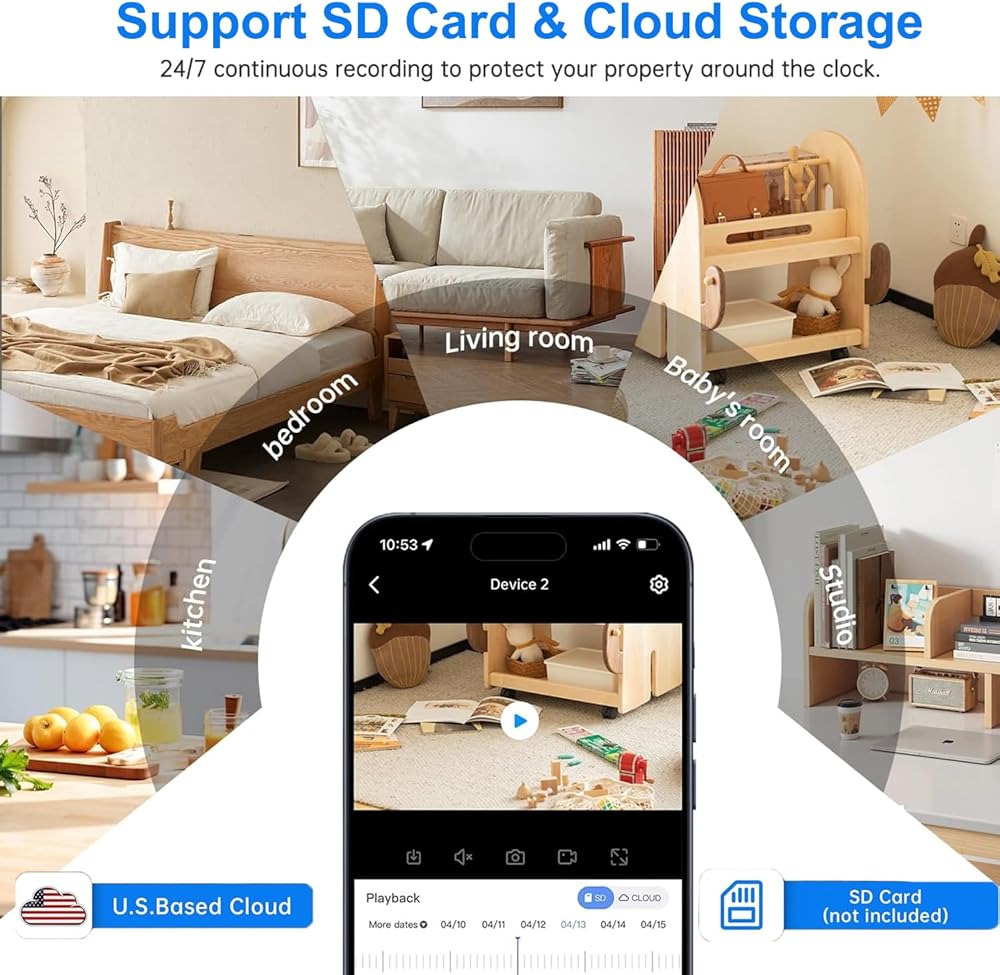 Multi User Sharing & US-Based Cloud Storage: Light bulb camera for home security outdoor & indoor supports multiple users to watch videos. You can share the device with your family and friends for simultaneous monitoring through the InstaVision app.The Cloud Storage includes state of the art AI powered person detection to generate alarms when an intruder is detected, 24/7 Professional Monitoring to verify and send help during break-ins, it also offers up to 180 days of alarm video clip storage, providing comprehensive security coverage.