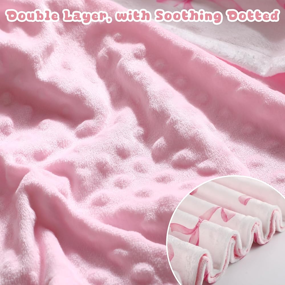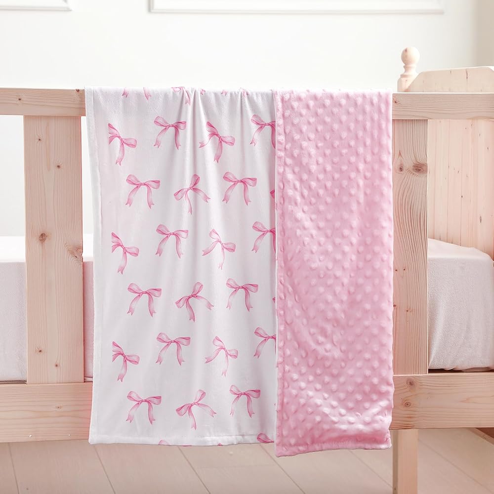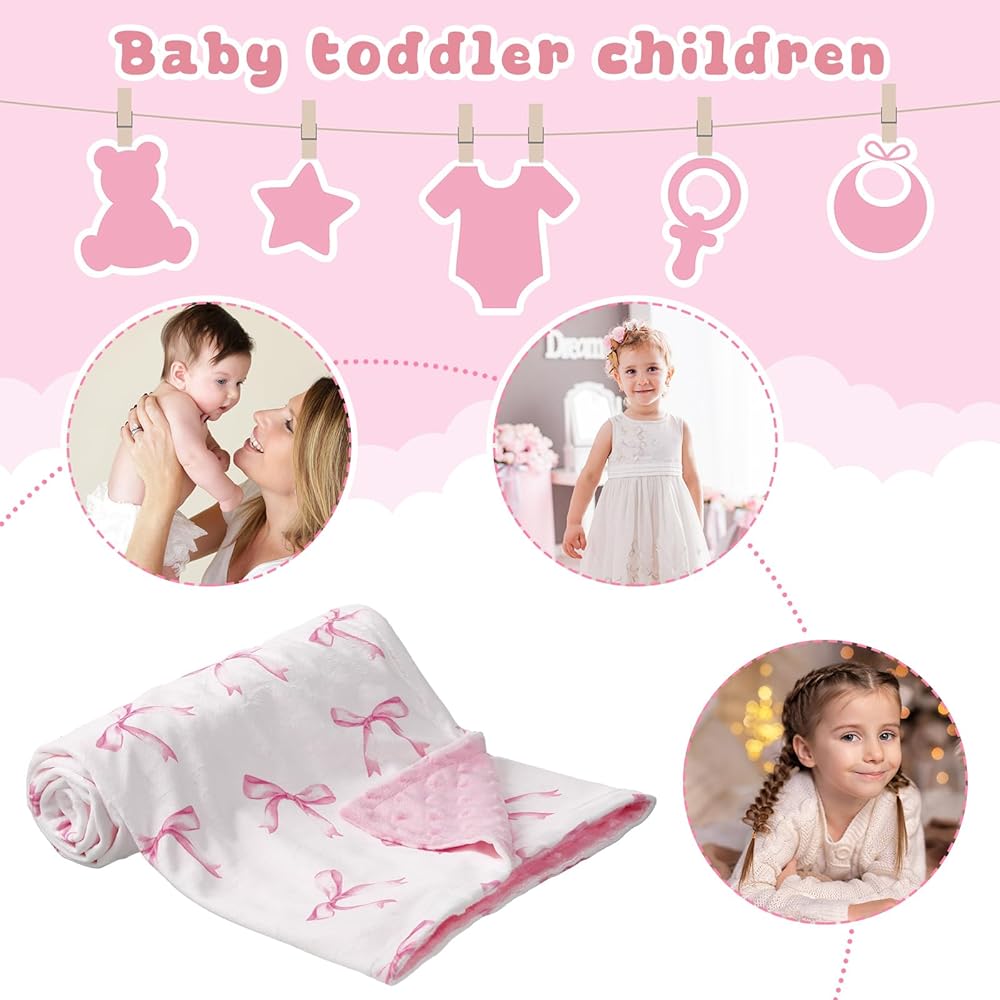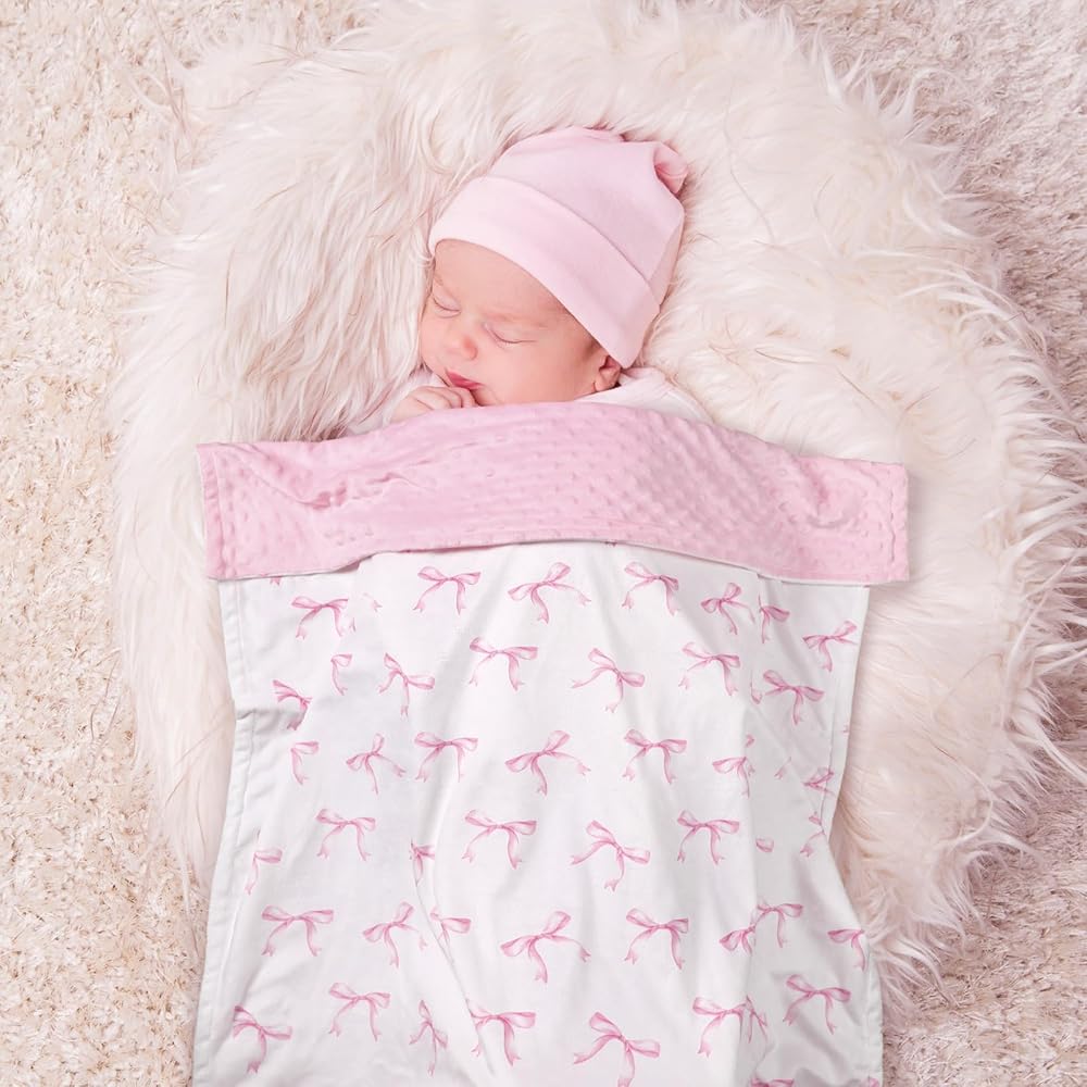 Lightweight yet substantial, this bow blanket for baby girl is effortless to pack and carry for on-the-go convenience. Whether placed in a stroller or bicycle seat, it's designed to make life more relaxed for busy parents, ensuring that comfort accompanies your little one wherever they go.
