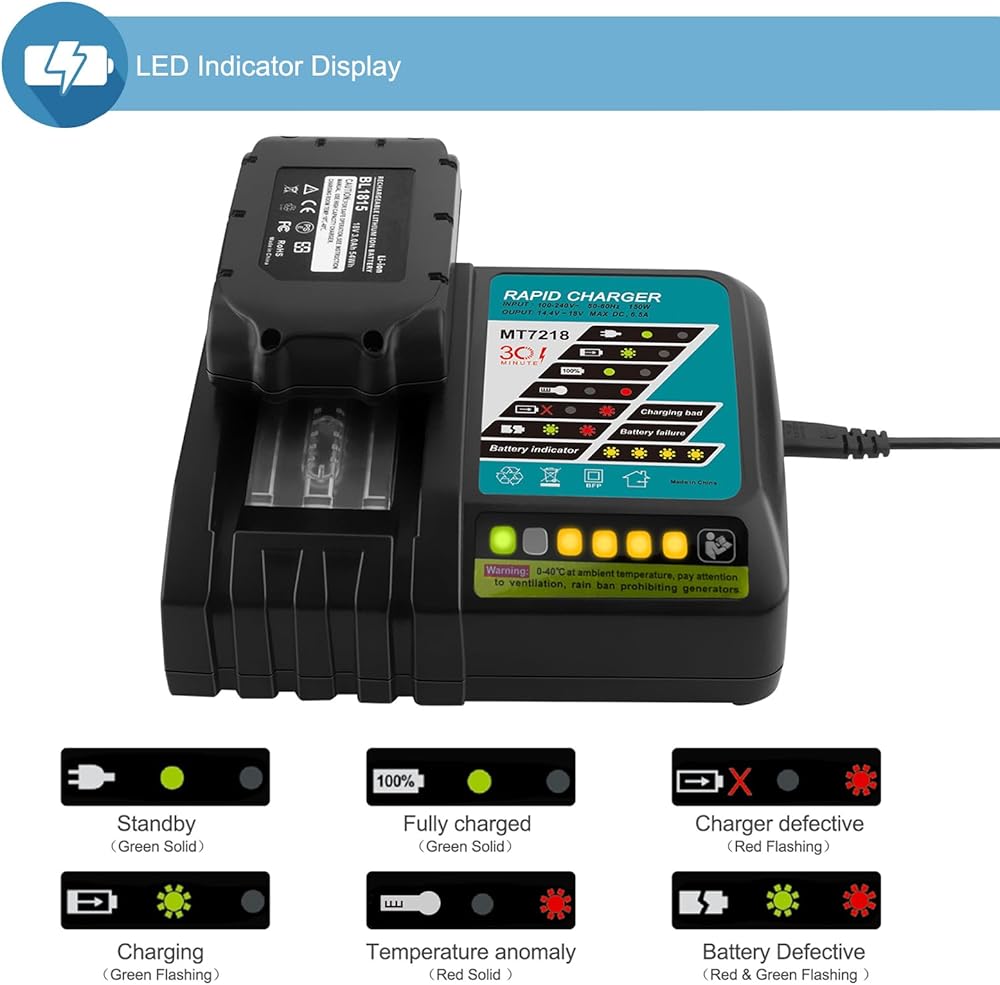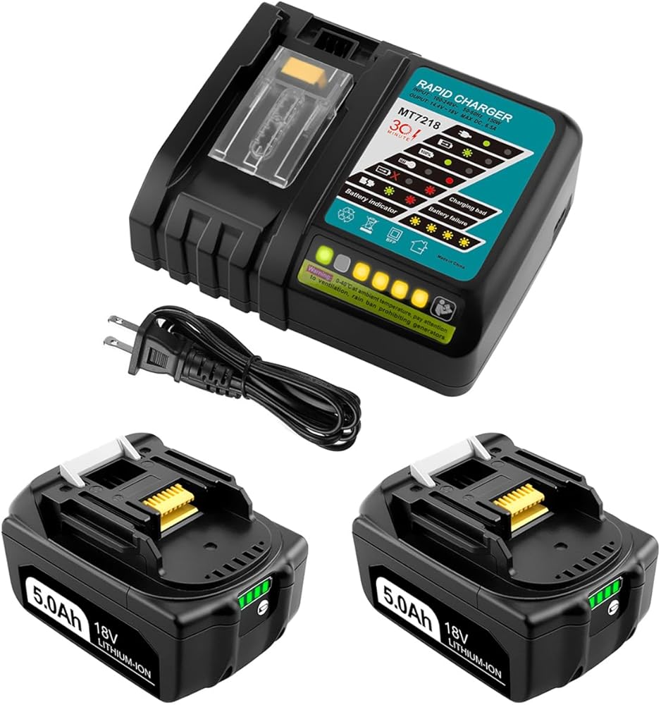 • Battery Specifications: Capacity:5.0ah丨Voltage:18V丨 Battery Type: Lithium ion丨Package contents: 2 pack Replacement for Makita 18v Battery.