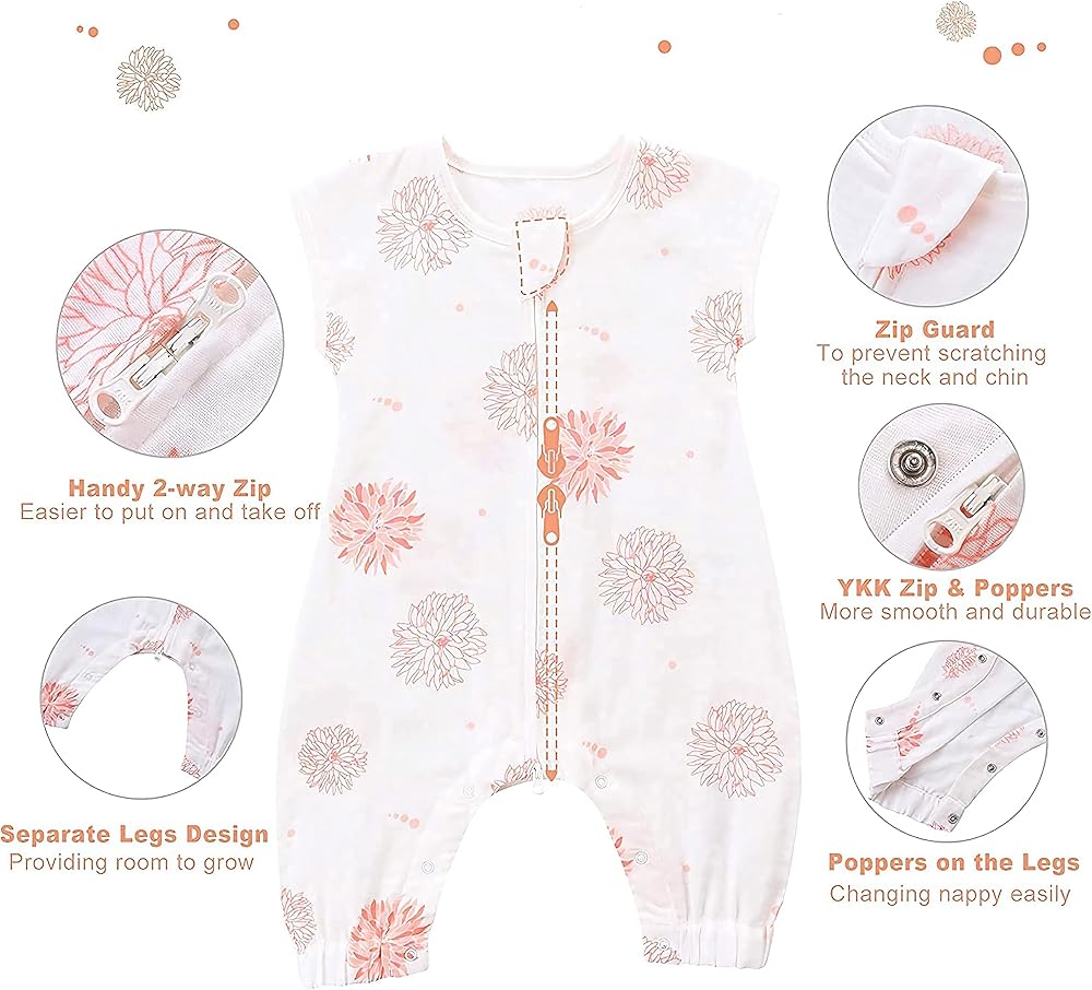 【ميزات السلامة المدروسة】 مجهزة بسحابات توجيه مزدوجة ناعمة ومتينة من أجل سهولة ارتداء الملابس. يتميز بغطاء ذقن واقية وغطاء سحاب داخلي لمنع تهيج الجلد أو قرصة. يمنع التصميم بلا أكمام ارتفاع درجة الحرارة مع السماح بالدوران المناسبين للنوم المريح.