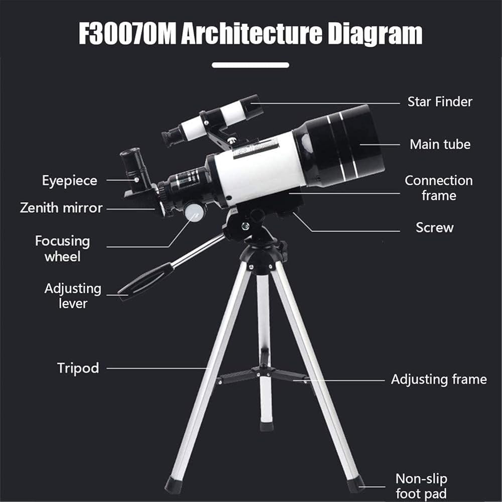 • [البصريات عالية الجودة] يبلغ طول هذا التلسكوب الفلكي طوله 300 مم وفتحة كبيرة من 70 مم. العدسات المغلفة ذات الإرسال العالي للضوء متعدد الطبقات تجعل الكائن يبدو أكثر إشراقًا وأكثر وضوحًا. <br