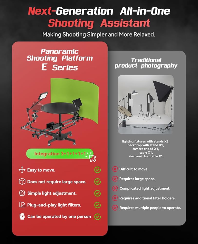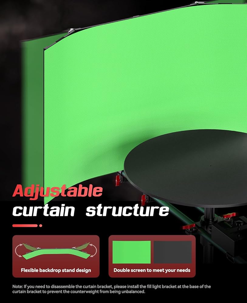 الإعداد السلس وهيكل الستار القابل للتعديل: 360 منصة التصوير لديها تصميم مرن على خلفية. ضمان تكييف إعداد التصوير الخاص بك مع أي مشهد أو مزاج.