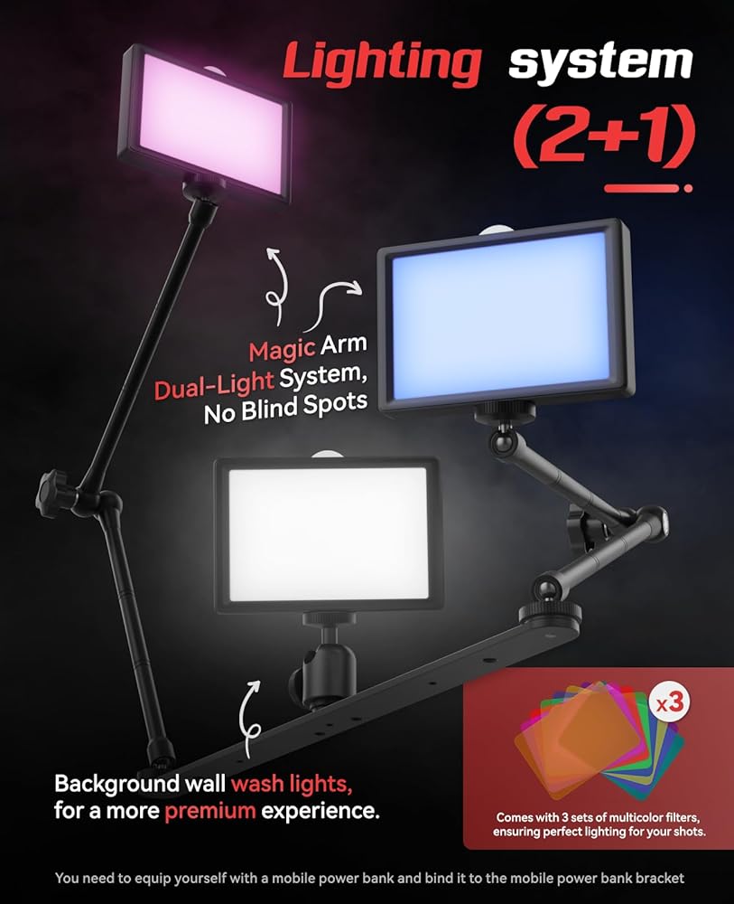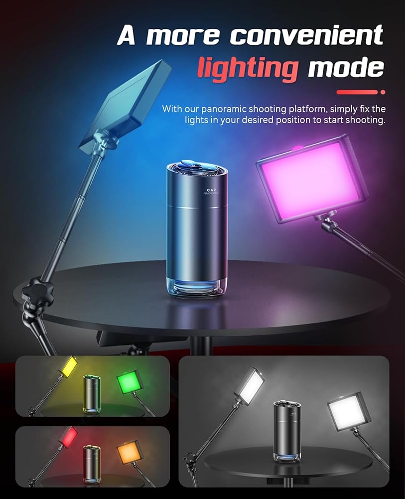 إضاءة مثالية ، في كل مرة: أنت في غرفة مضاءة بشكل خافت ، ومع ذلك ، فإن موضوعك مضاء تمامًا من جميع الجوانب ، خالية من الظلال. مع أنظمة الإضاءة 2+1 ، يضمن هذا الحفارة كل التفاصيل الملوثات العضوية الثابتة مع 3 مجموعات من المرشحات متعددة الألوان ، مما يتيح لك تخصيص إضاءةك وتعزيز جو صورك ومقاطع الفيديو الخاصة بك ، سواء كنت تصور منتجات لمتجرك عبر الإنترنت أو إنشاء محتوى مذهل للوسائط الاجتماعية.