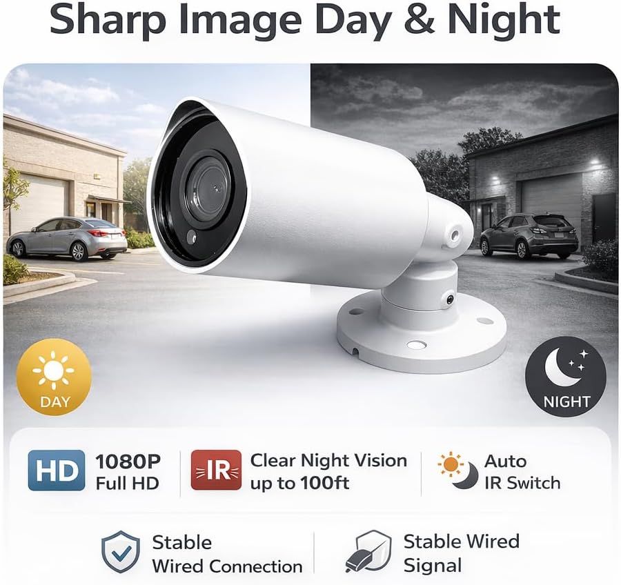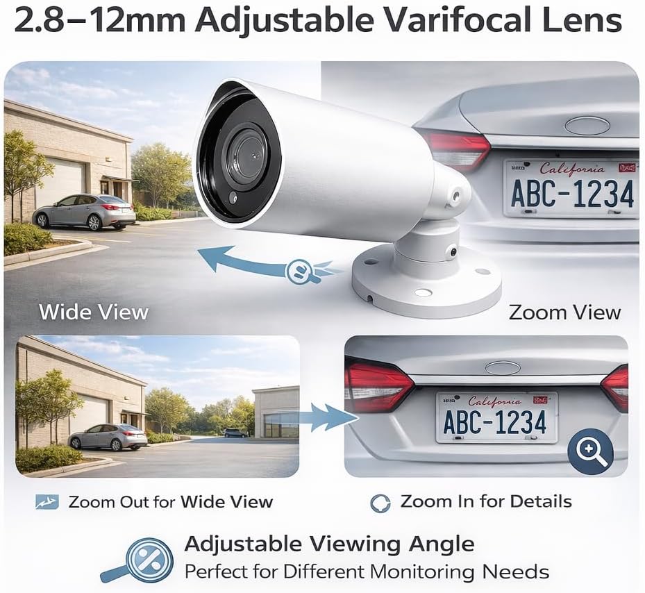 【2.8-12 ملم العدسة】 كاميرا الرصاص الأمنية تقدم وضوح صورة فائقة مع 1/2.9 2.1 ميجابكسل مستشعر صورة CMOS ودقة 1080 بكسل. كاميرات المراقبة الرصاصية 2.8-12 ملم تتنافس على التزحميات التي تتمتع بزاوية.