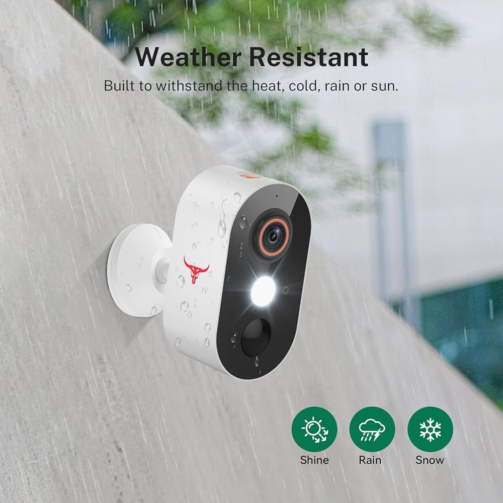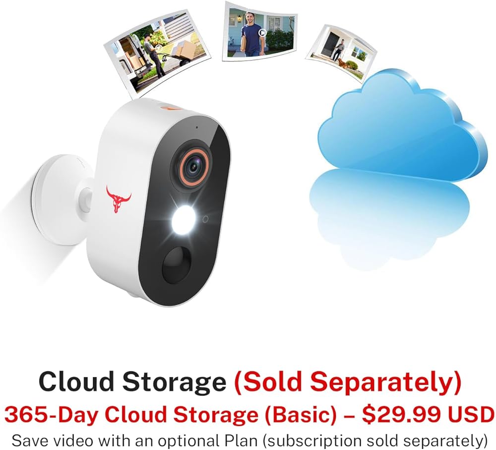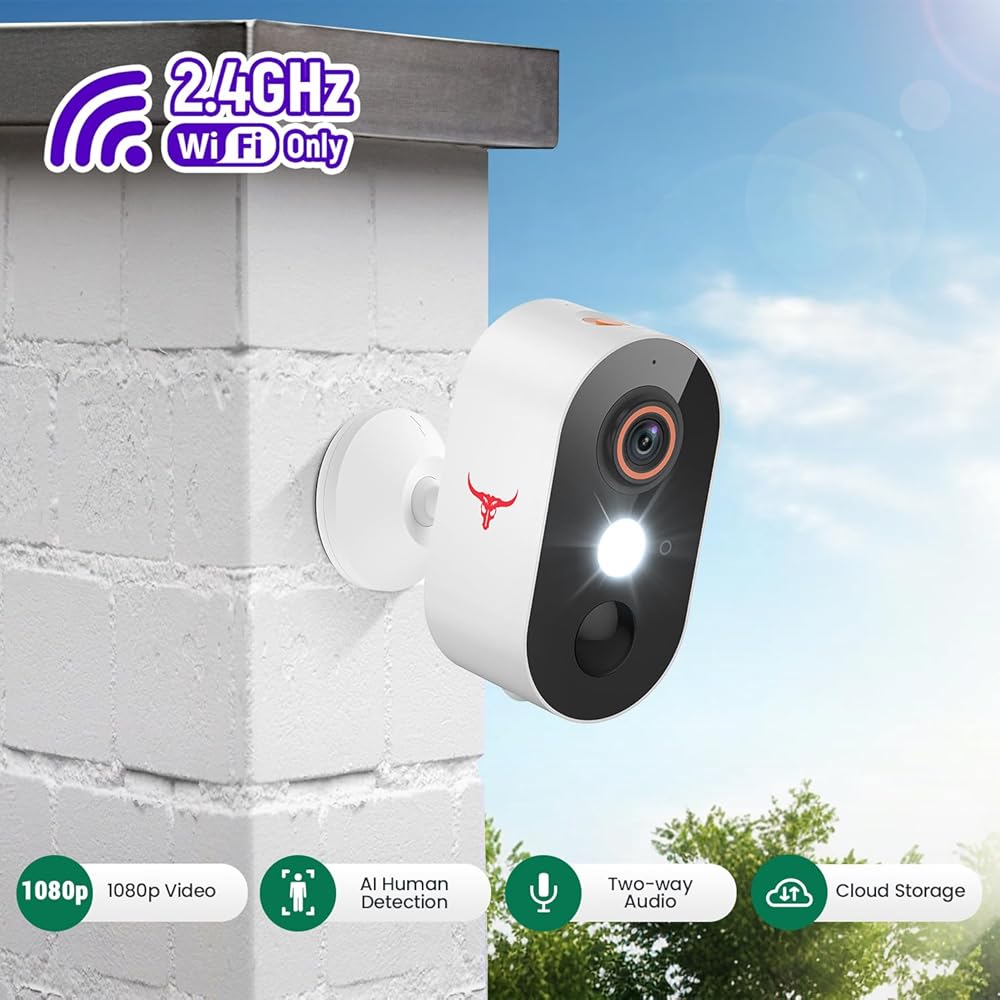 كاميرا أمان لاسلكية 1080 بكسل مع تقنية الذكاء الاصطناعي للكشف عن الإنسان، رؤية ليلية، التحدث في اتجاهين، تخزين سحابي، 2.4 جيجا واي فاي، كاميرا بطارية لأمن المنزل (مصباح كشاف واحد)