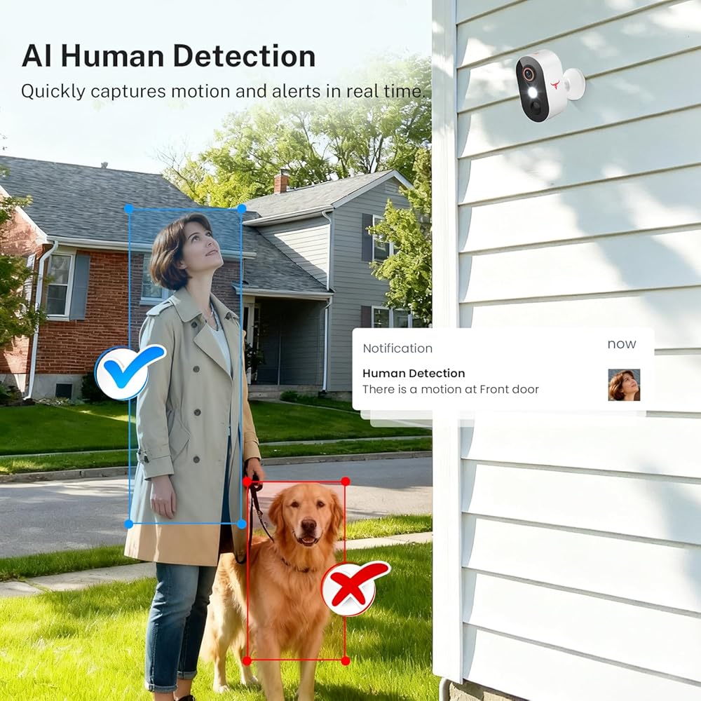 1080p Wireless Security Camera with AI Human Detection, Night Vision, 2-way Talk, Cloud Storage, Rechargeable Battery Included, Battery Camera for Home Security, 2.4G WiFi