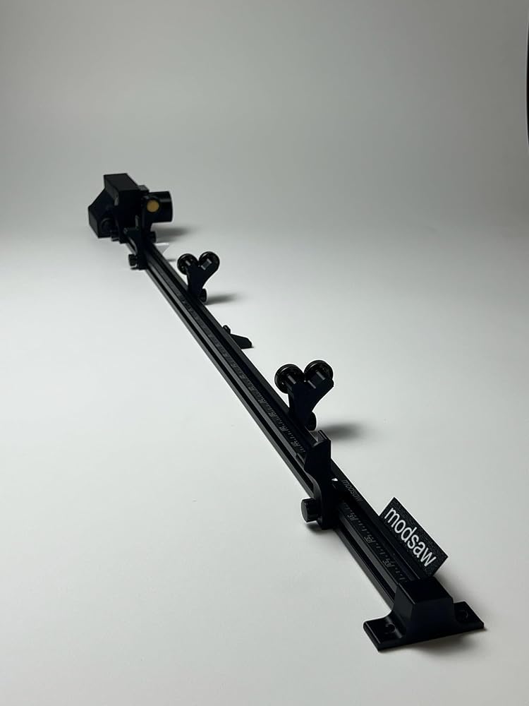 This is our base model hobbyist saw. It allows you to cut your arrows carbon to carbon by pulling your nock out and comes with standard steel ball bearings for spinning your arrows. - Motor unit with one installed diamond coated blade - Squaring post with one pre-installed sandpaper disc, with 5 additional sandpapers included in the box - A wobble indicator to test for broadhead wobble - A set of steel bearing posts to spin your arrow on - A stabilization leg to stabilize the saw while spinning your arrow - An anchor tab that can be placed anywhere along the rail to attach your saw to a workbench - A mid rest to keep your arrow from flexing while cutting - A carbon to carbon rear rest to accurately measure your arrow length while cutting - An endcap with mounting points to attach your saw to a workbench modsaw - An all-in-one solution for building carbon arrows yourself. This modular arrow saw is designed and built in Texas and is everything you need to build your own carbon arrows. Stop relying on others to build your arrows and be confident in what you are shooting! This single unit comes with everything you need to get started including a saw, a squaring post, a arrow spinner, a vacuum attachment, and mounting points to hold the saw to your workbench. Simply follow the steps below to get professional quality arrows at home or in your shop. If you have any questions about purchasing or operating, we are here and happy to help! Specs: Overall Length: (38 inches) Maximum Length you can cut an arrow: (33 3/8 inches) Motor Specs: 11,000rpm Overall Width: 3 1/2 inches Overall Height: 3 inches Vacuum Attachment Size: (1 1/4 inch) or (1 3/4 inch) Saw Blade: 1.5 inch Diamond Coated Cutoff Wheel Sandpaper Info: 400 grit (Each saw comes with 5 sandpaper pieces) Power Adapter is included