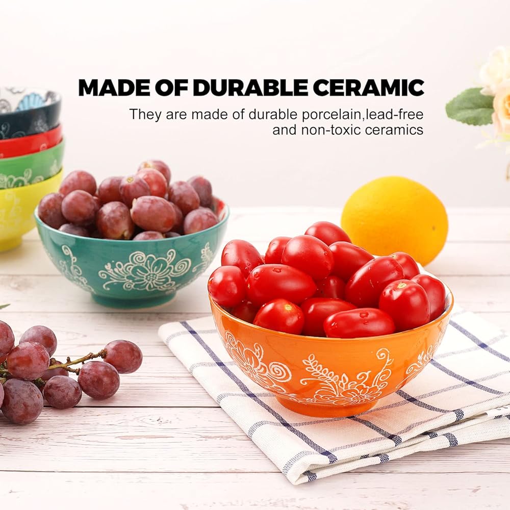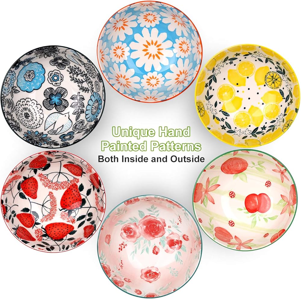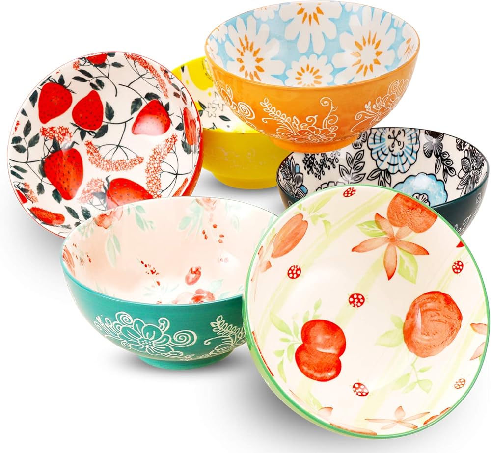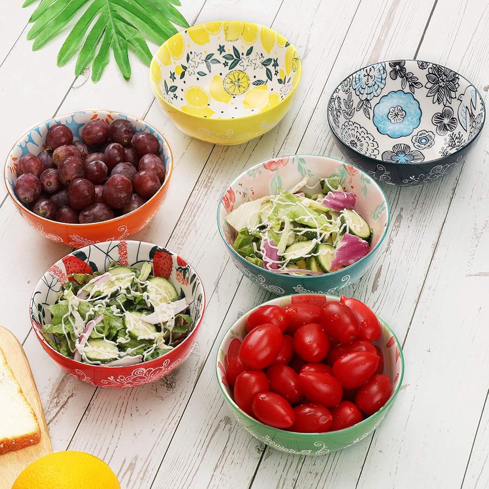 ديكو طقم اوعية بورسلين (18 اونصة، 6 قطع) - للحبوب والشوربة والسلطة والمعكرونة والفواكه والايس كريم - امنة للاستخدام في الميكروويف وغسالة الصحون، تصميمات متنوعة