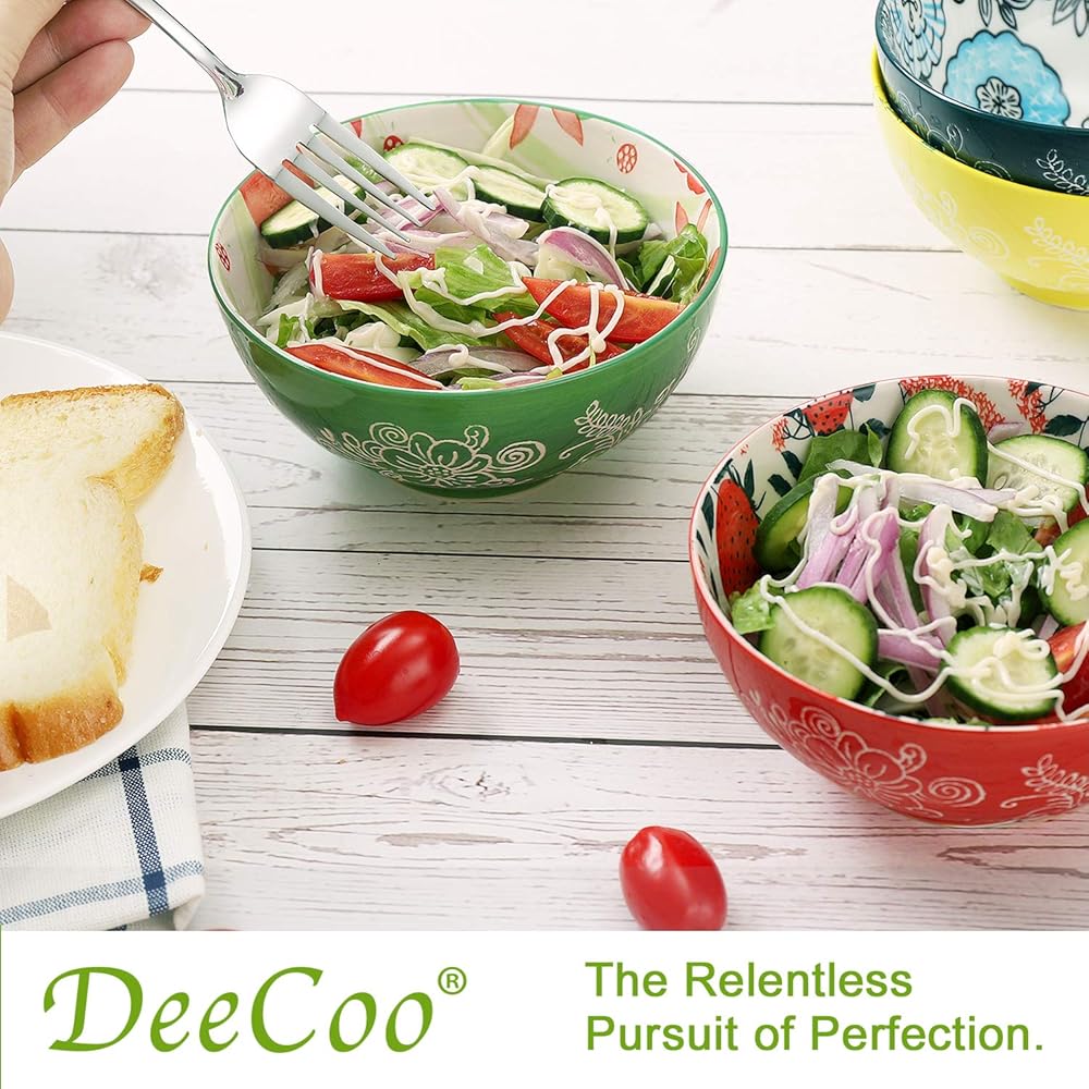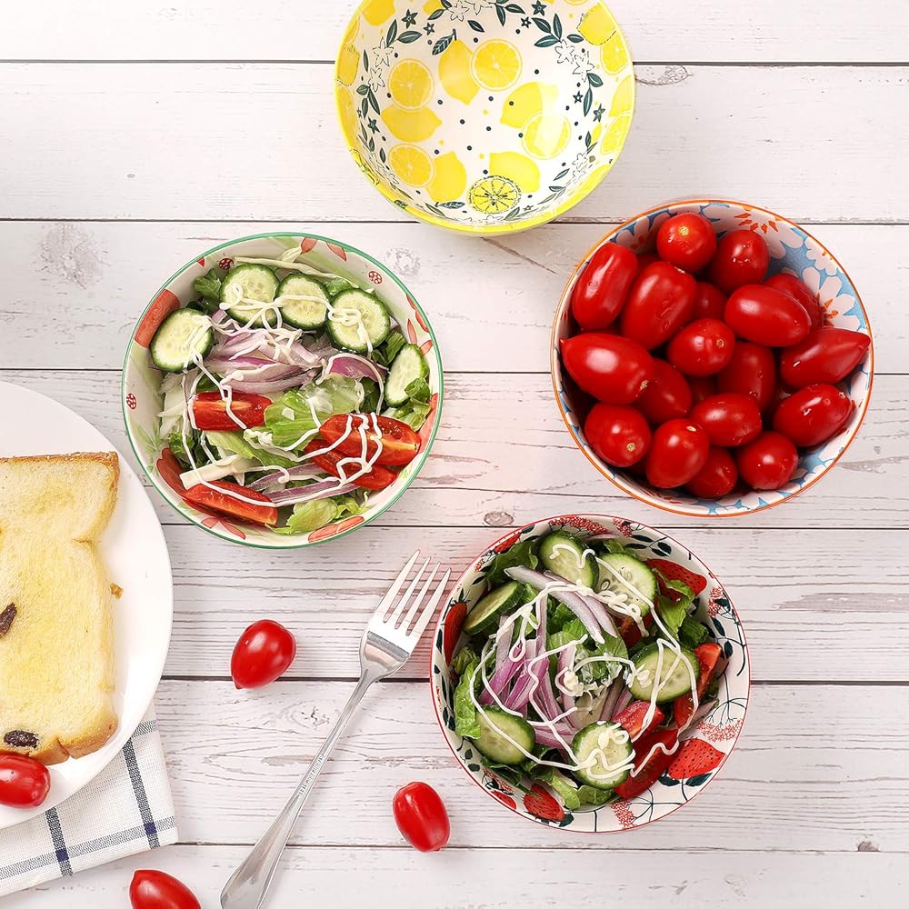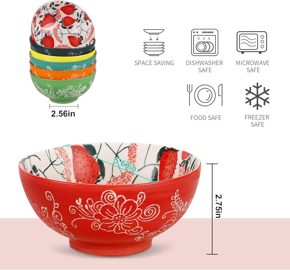 ديكو طقم اوعية بورسلين (18 اونصة، 6 قطع) - للحبوب والشوربة والسلطة والمعكرونة والفواكه والايس كريم - امنة للاستخدام في الميكروويف وغسالة الصحون، تصميمات متنوعة
