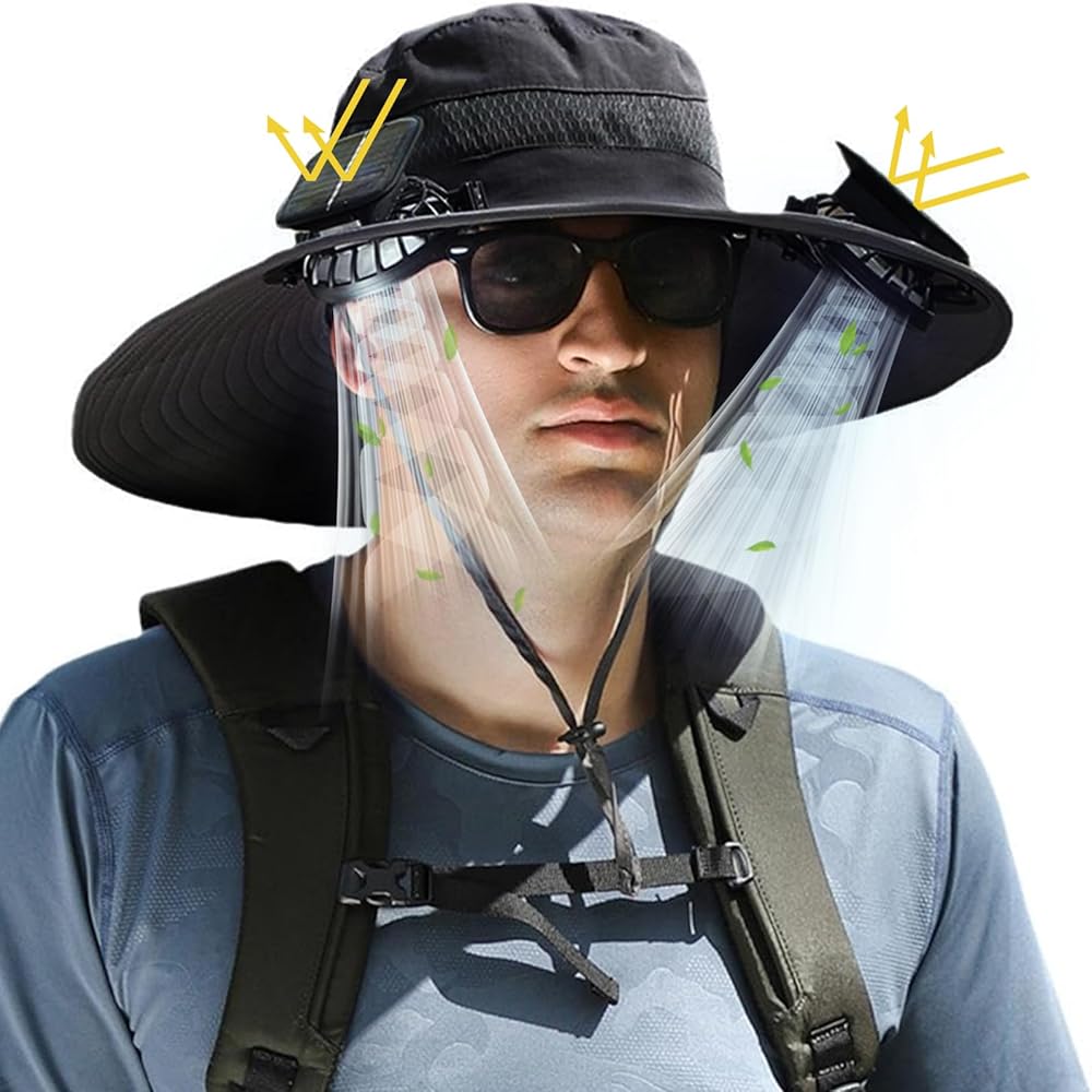 التبريد : تجربة الراحة النهائية مع قبعة مروحة الطاقة الشمسية الخارجية التي تأتي مزودة بعشرين صغيرتين على الحافة الأمامية ، مما يوفر نسيمًا منعشًا لتبريد وجهك. التصميم الخفيف يعني أنه يمكنك ارتدائه طوال اليوم دون إزعاج.