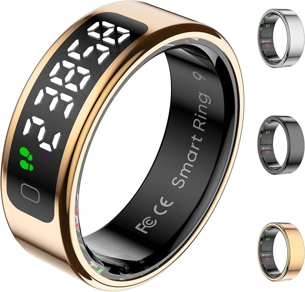 حلقة ذكية للنساء مع شاشة عرض، حلقة نوم للرجال مع معدل ضربات القلب، متتبع اللياقة البدنية/متتبع الخطوات لمراقبة النشاط/الخطوات/السعرات الحرارية، شحن لاسلكي، لنظام iOS Android (RoseGold,12#)