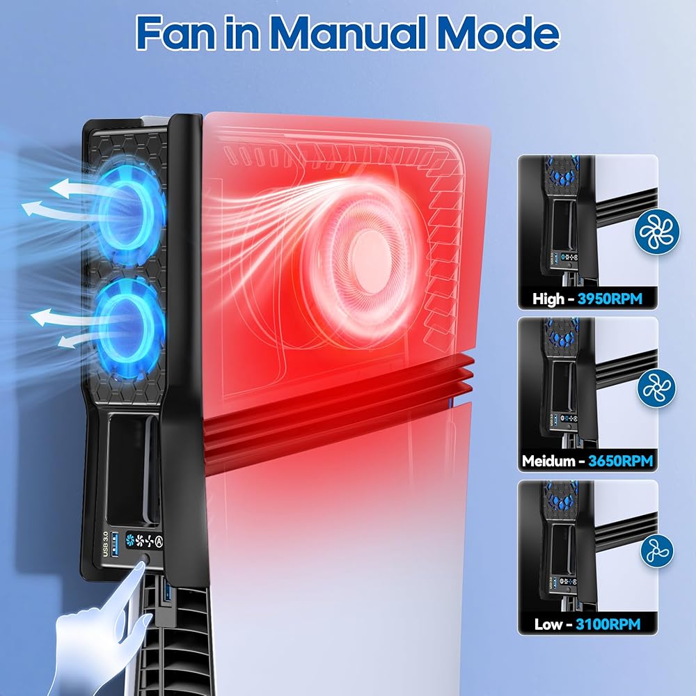 يجب أن تعرف قبل الشراء: متوافق مع PS5 Slim/ PS5 Pro (Disc & Digital Edition) وليس يناسب لوحات المفاتيح الأصلية PS5. سرعة المروحة: منخفضة: 3100 دورة في الدقيقة ، متوسطة: 3650 دورة في الدقيقة ، عالية: 3950 دورة في الدقيقة