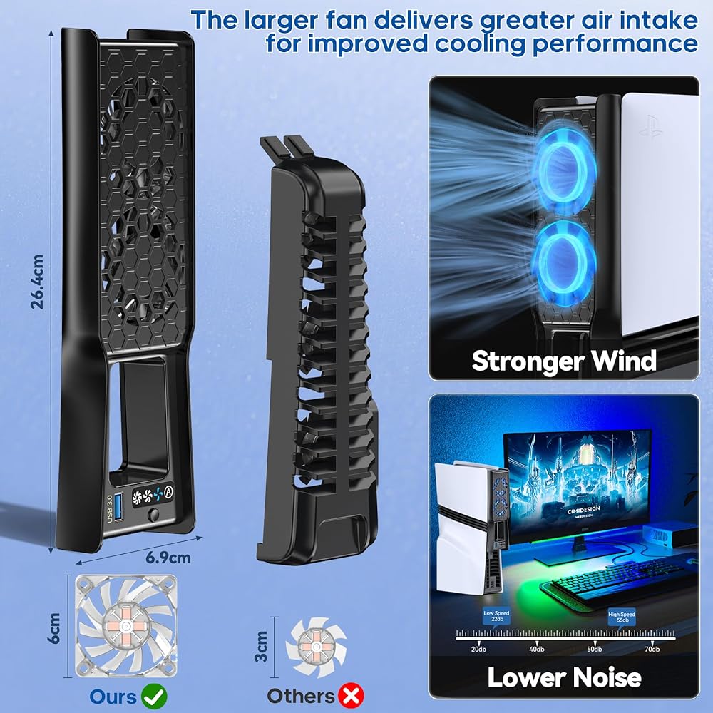 هدية اللاعبين العملية: هل تبحث عن هدية لصديق اللاعب الخاص بك؟ مروحة التبريد المروحة PlayStation 5 Slim/Pro هي خيار معقول!