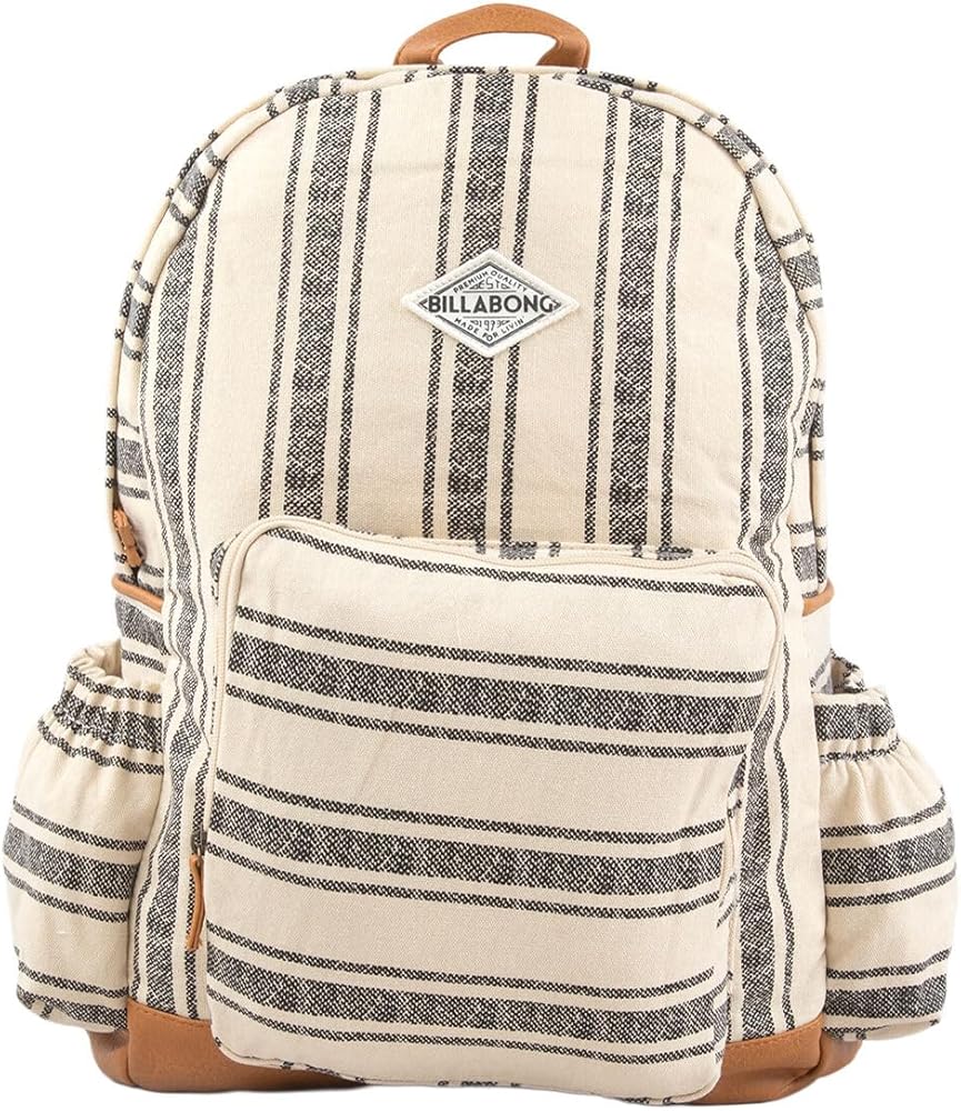 Billabong Home Abroad Tie Dye Backpack. Printed canvas backpack. Allover print. Vegan leather details and bottom. Logo patch at front. Dual side elasticated pockets. Interior padded laptop sleeve. Padded back and adjustable shoulder straps. Main front and interior zipper pockets. Dimensions: 18.25" x 12.5" x 4.75", 22L. 100% cotton. Imported. | BILLABONG Home Abroad Backpack
