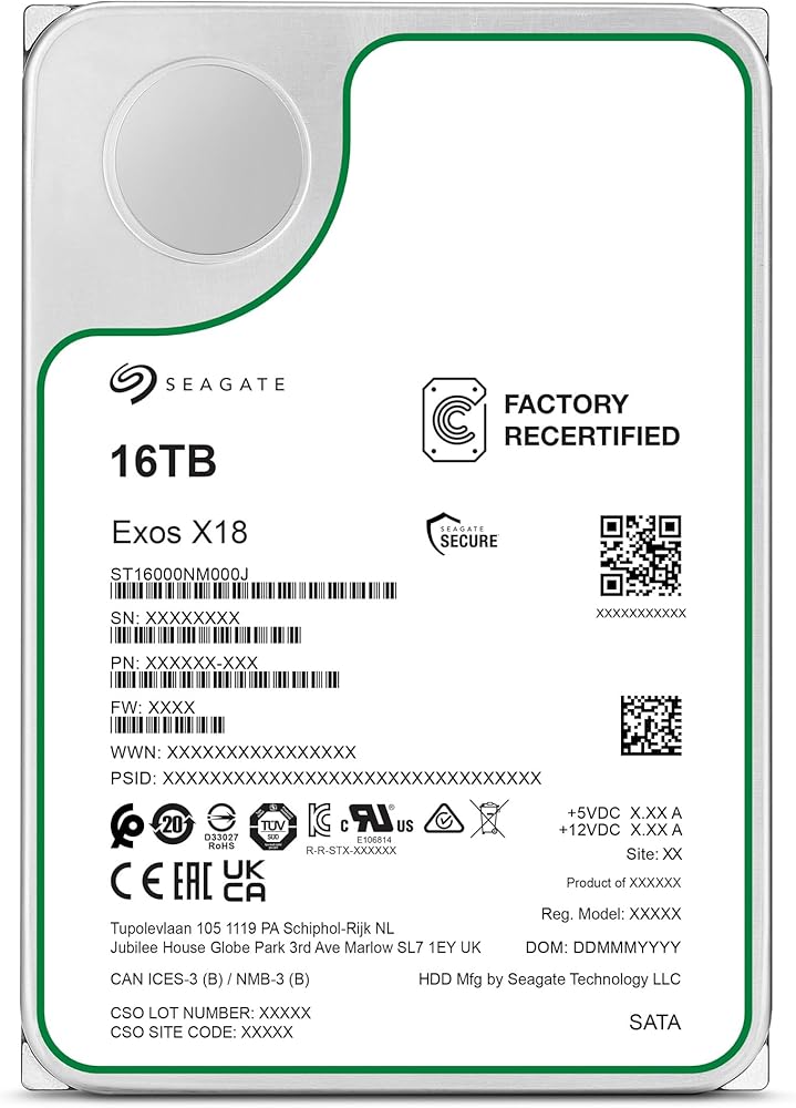 Seagate Exos X18 Enterprise 16tb HDD ، CMR 3.5 "Hyperscale SATA 6GB/S ، 7200 دورة في الدقيقة ، 512E ، 4KN FAST FORMAT ، زمن انتقال منخفض مع التخزين المؤقت المحسّن ، النموذج رقم: ST16000NM000J (تم تجديده)