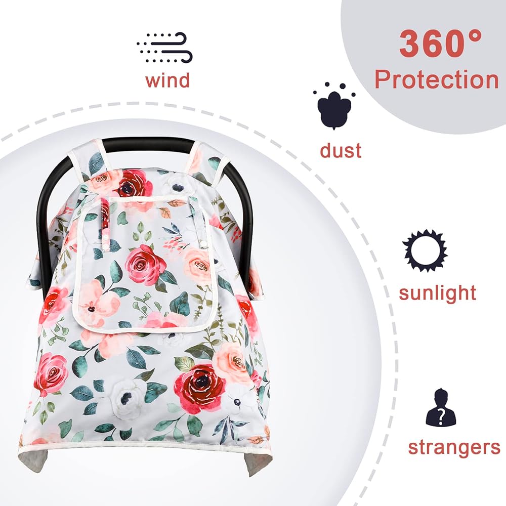 🌺حماية 360 درجة: يمكن لغطاء مقعد السيارة للأطفال هذا أن يعزل الاضطرابات الخارجية، مما يبقي طفلك بعيدًا عن الغرباء الفضوليين وأشعة الشمس القاسية والرياح الباردة، مما يخلق بيئة نوم هادئة ومريحة لطفلك.