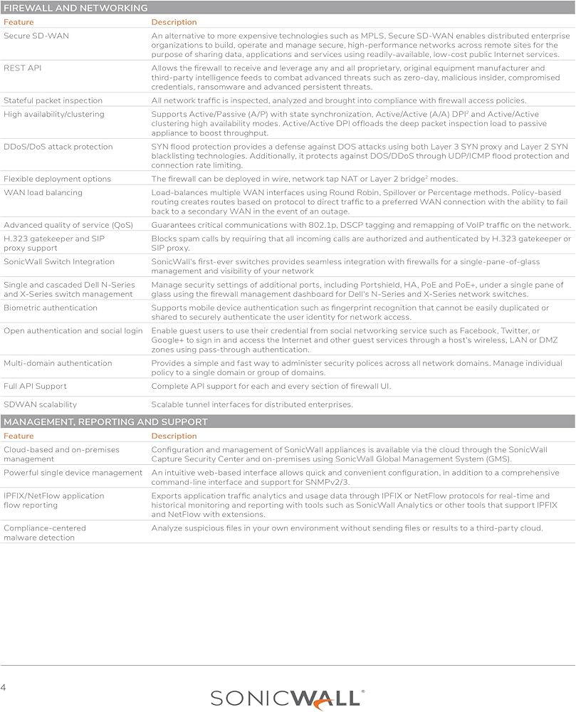 • 24x7 Expert Technical Support: Get direct access to SonicWall's global support team any time of day, ensuring rapid troubleshooting and peace of mind.