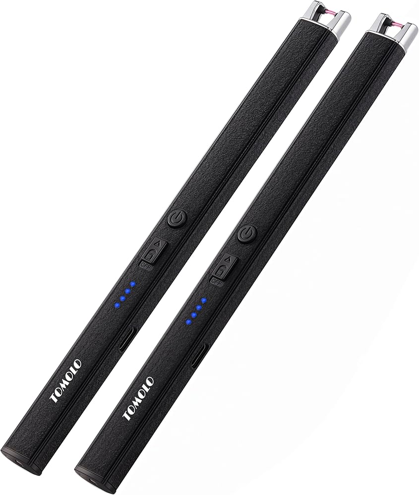 Upgrade your everyday ignition experience with the TOMOLO 2 Pack Electric Candle Lighter — a powerful, windproof, and flameless arc lighter designed for convenience and safety. Built with advanced plasma arc technology, this lighter ignites candles, grills, or fireworks in seconds without producing flame or odor. The USB rechargeable battery offers up to 500 uses per full charge and features LED indicators so you're always aware of the remaining power. Unlike flexible-neck models, this lighter features a straight-tube design for a sleek, modern feel that fits easily in drawers or bags. A built-in safety switch and 6-second auto shut-off provide extra peace of mind, especially in homes with children. Whether you're lighting candles at home or starting a fire outdoors, this compact and durable electric lighter is the perfect tool for the job. Ideal for candles, cooking, fireworks, and more—this versatile set is a smart choice for anyone seeking a reliable USB rechargeable lighter with style and safety in mind.