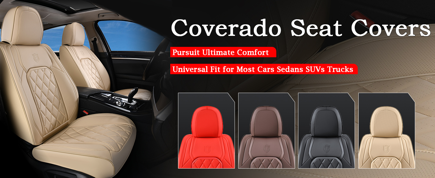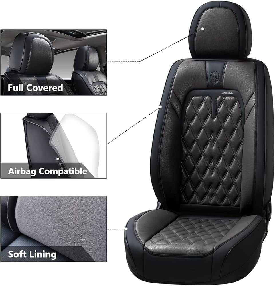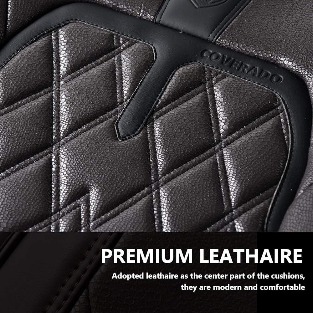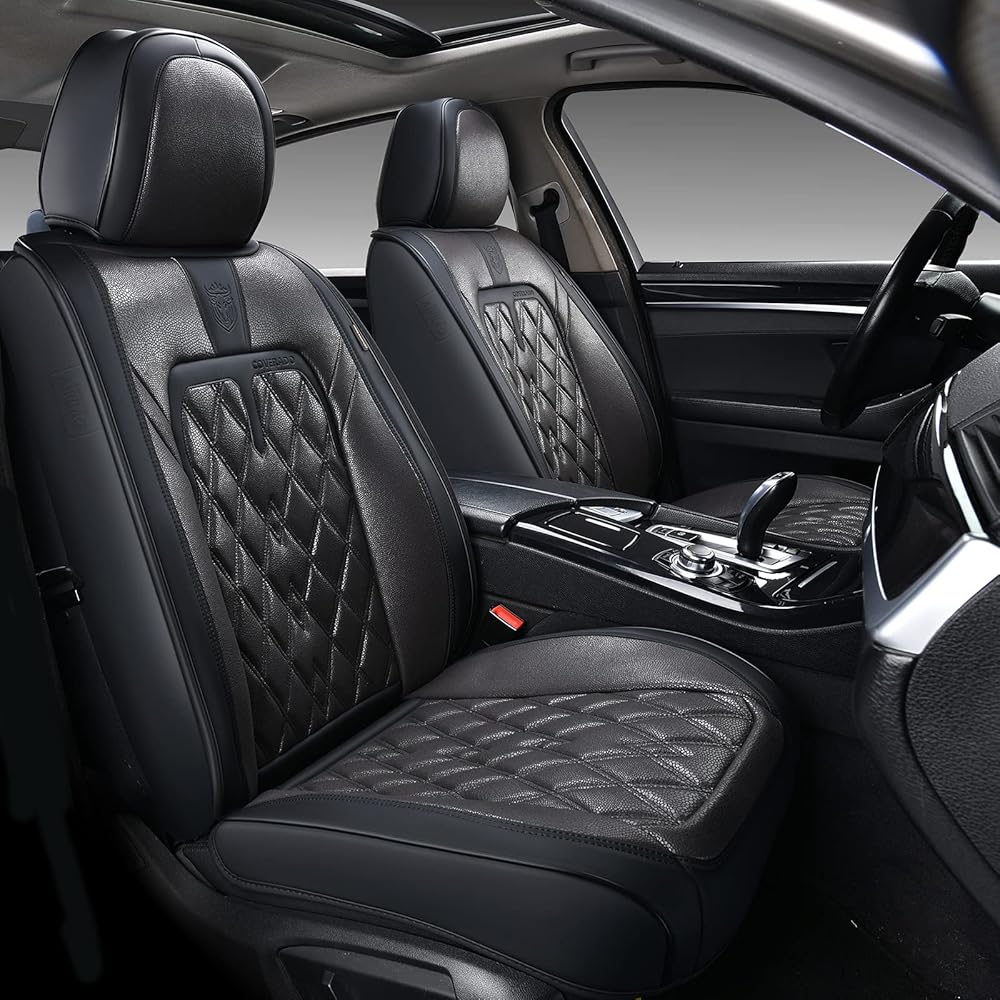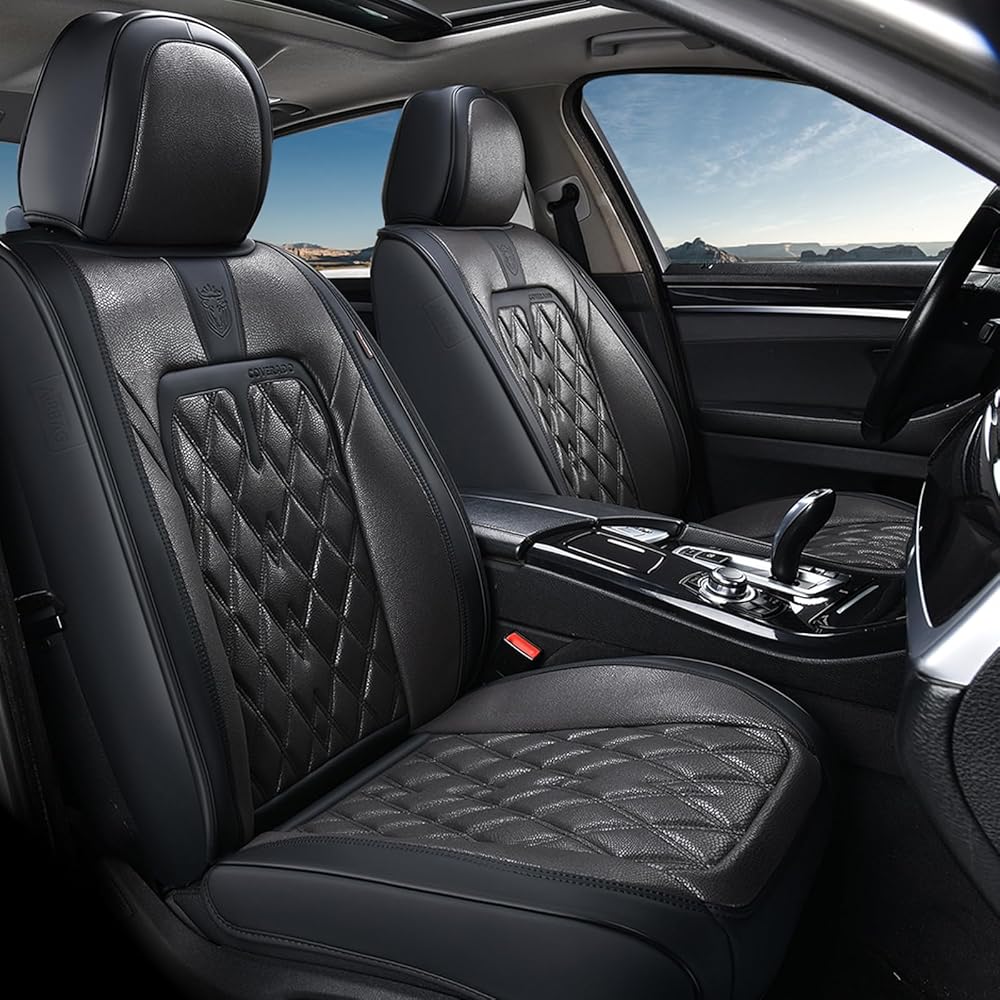 أغطية مقاعد السيارة Coverado الأمامية، عبوتان من أغطية المقاعد العالمية للسيارات، وسائد مقاعد جلدية فاخرة، واقيات مقاعد مقاومة للماء والأوساخ وأغطية مقاعد مقاومة للأشعة فوق البنفسجية تناسب معظم المركبات باللون الأسود