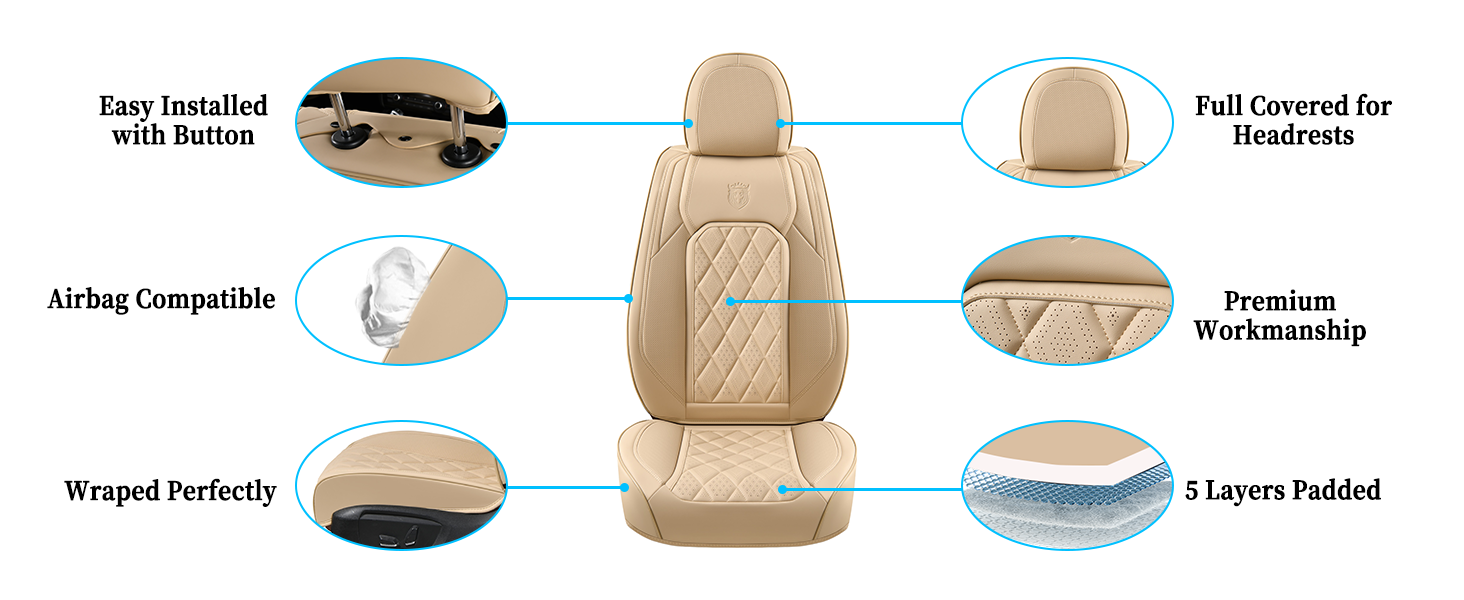 • 🔥❤ 🔥 【ملاءمة عالمية】: المسح الرقمي بواسطة معدات ثلاثية الأبعاد لتوفير الملاءمة المناسبة لأكثر من 99% من مقاعد السيارة، وتتوافق وسائد المقعد مع الوسادة الهوائية ومقبس حزام الأمان وتحافظ على الوظائف غير النشطة.