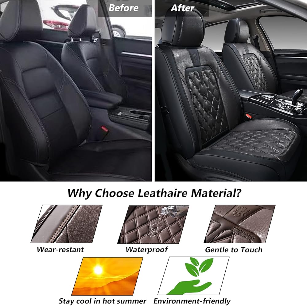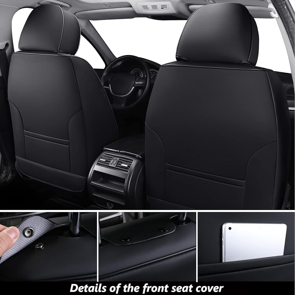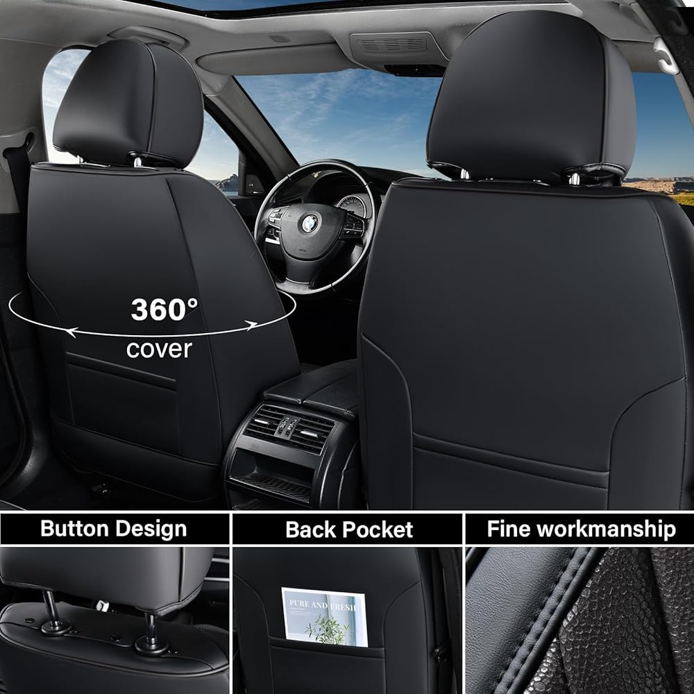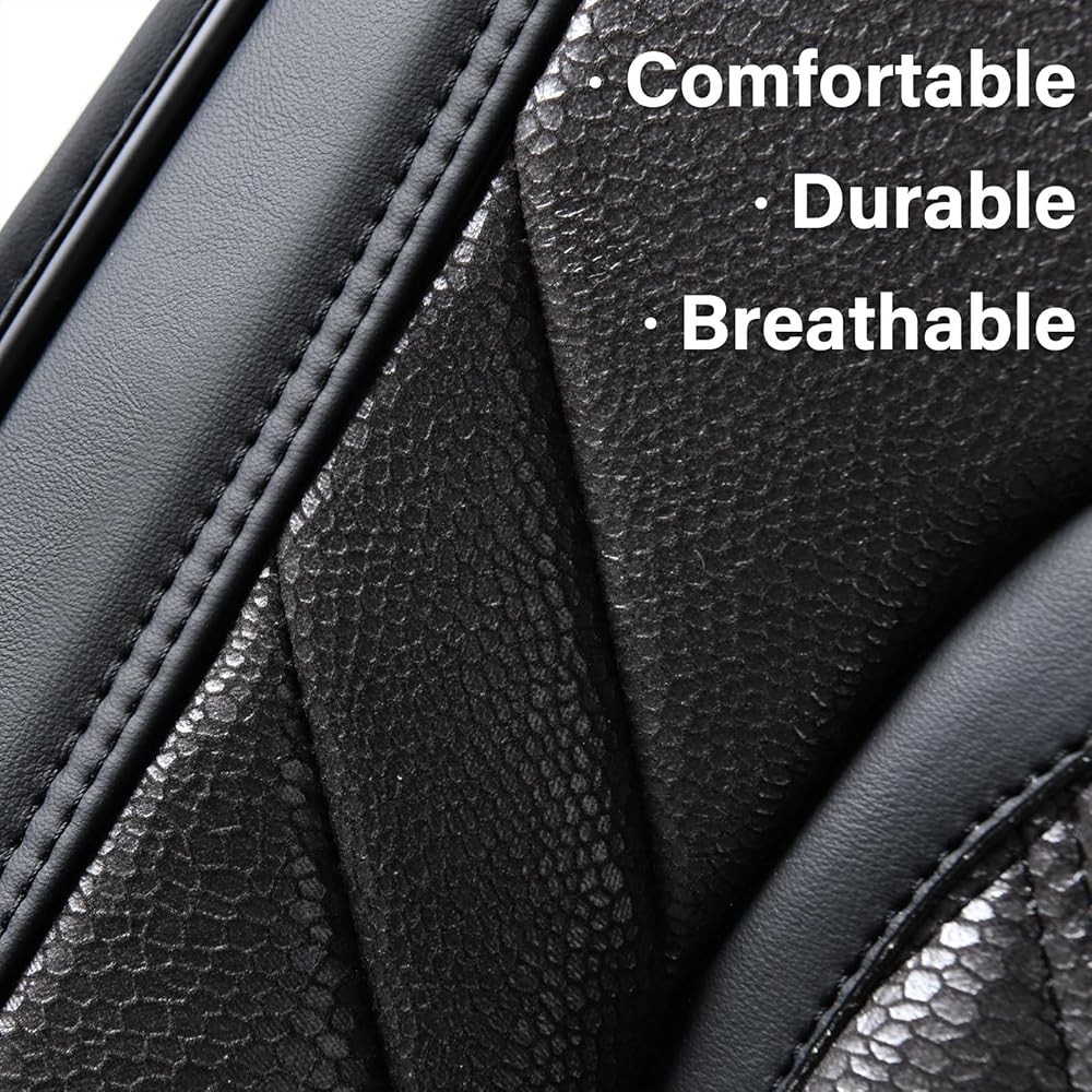 • 🔥❤ 🔥 【تصميم عصري】: مصنوعة من جلد فاخر وناعم مع حافة مغطاة بالقماش، أغطية المقاعد هذه مليئة بإسفنج عالي الكثافة عالي المرونة توفر الراحة القصوى وتضيف إحساسًا ساحرًا إلى الجزء الداخلي لسيارتك.