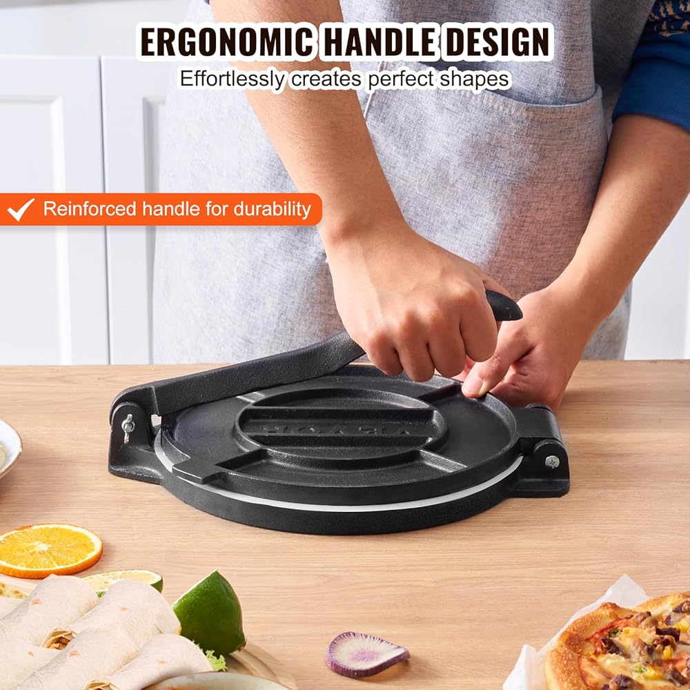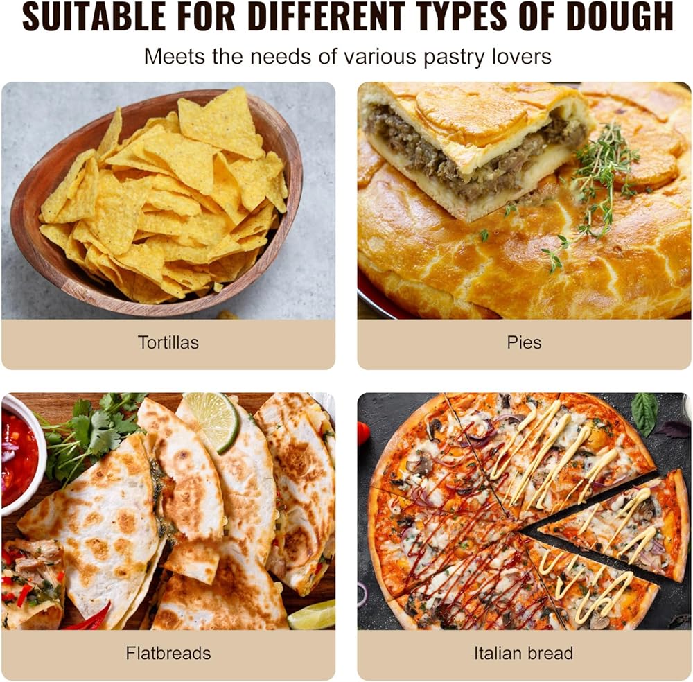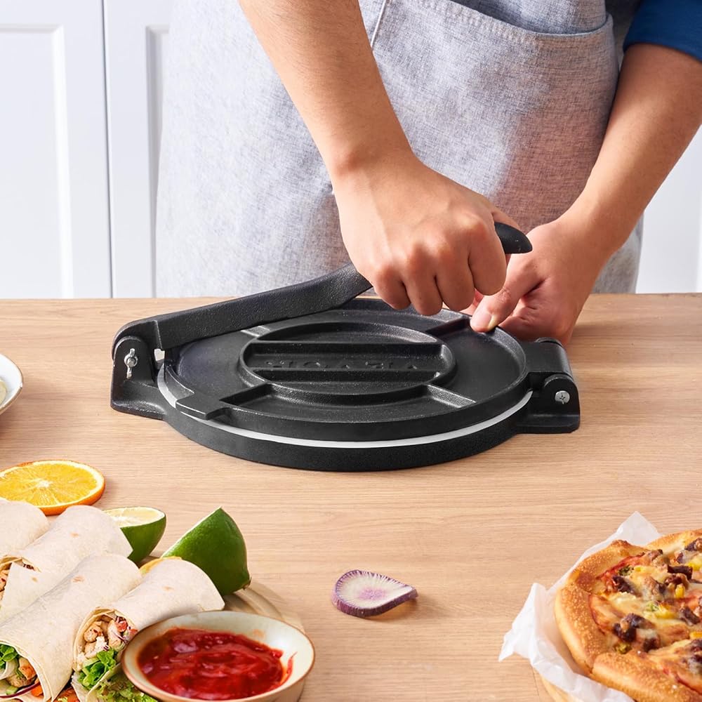 الحجم القابل للتعديل: تخصيص سمك التورتيا بسهولة من 1 إلى 5 مم باستخدام مقبض التعديل. مزودًا بقوالب أسطوانة بحجم 4 بوصات و 6 بوصات ، يتيح لك إنشاء أحجام مختلفة لتناسب تفضيلات الأسرة أو الضيوف.