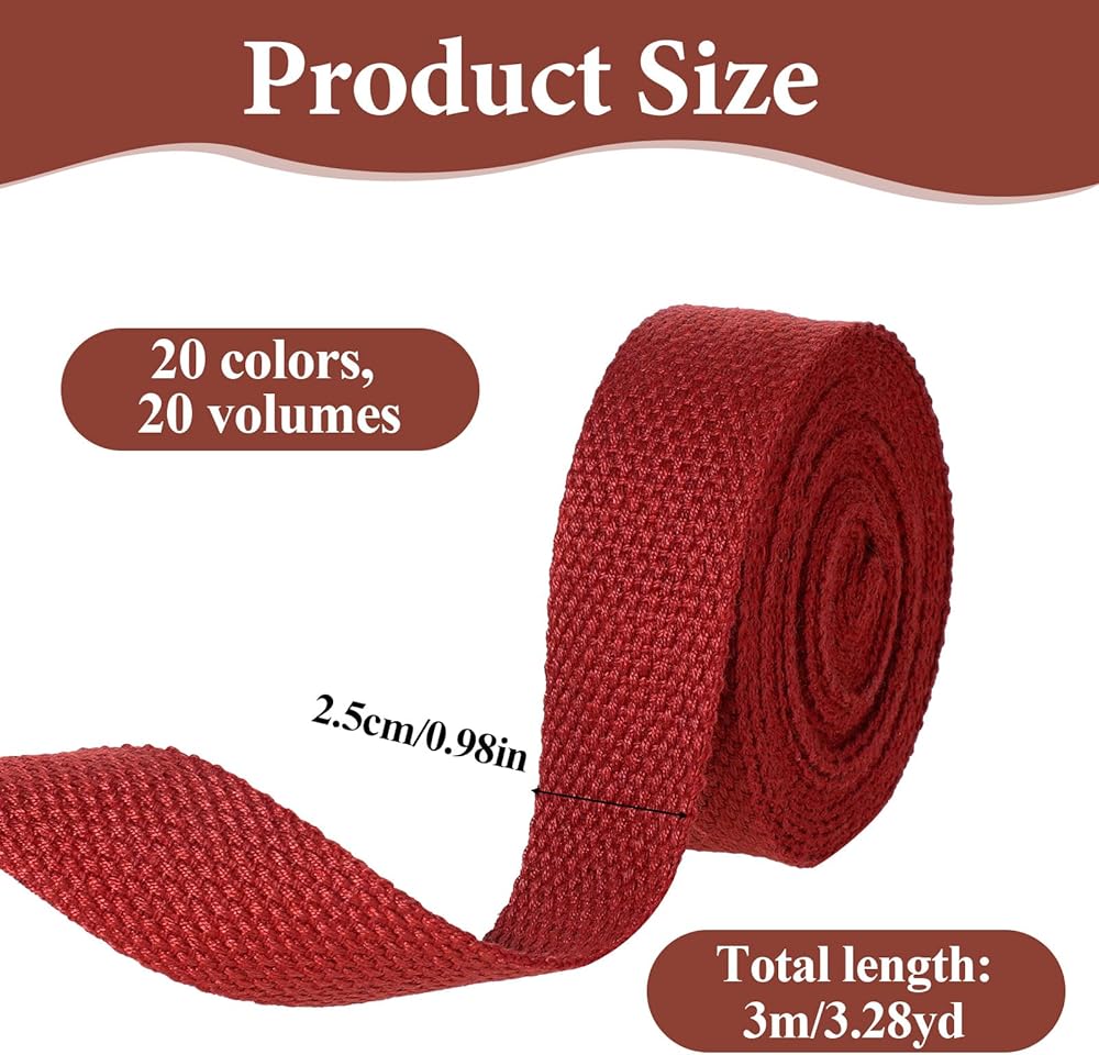 • 20 Rolls of webbing: Our package includes 20 rolls of 1 inch webbing strap, each roll measuring 3 yards in length, providing a total of 60 yards. This nylon webbing is perfect for various DIY projects, ensuring you have enough material for all your creative needs.