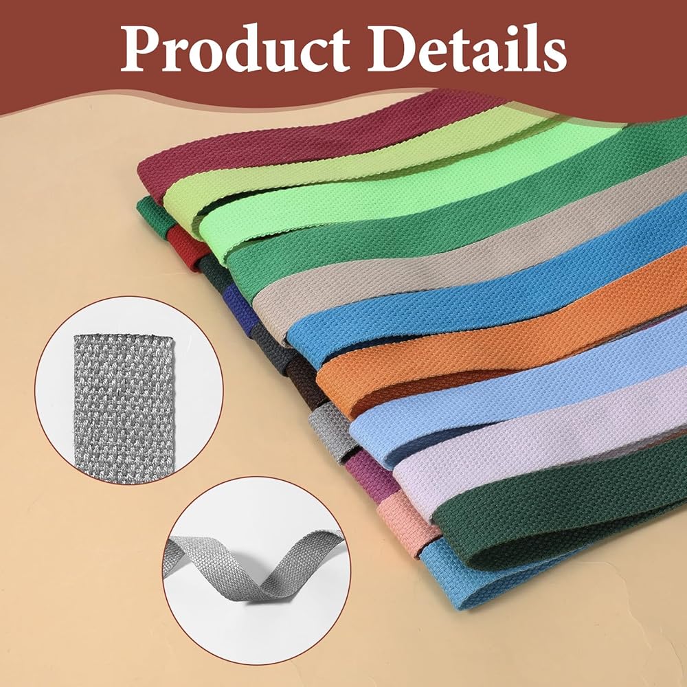 • Polyester Cotton: Made from high-quality polyester cotton, this 1 inch cotton webbing is strong, flexible, and resistant to wrinkles and shrinkage. The 1” webbing is easy to sew and machine washable, making it ideal for long-lasting use in various applications.