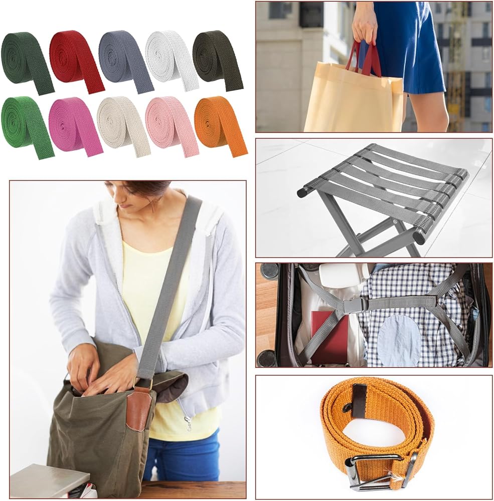 • Versatile Usage: This climbing webbing is perfect for a wide range of uses, including bag handles, belts, and outdoor gear. The 1 inch nylon webbing is also suitable for upholstery webbing for chairs and lawn chair webbing replacement, providing both strength and comfort.