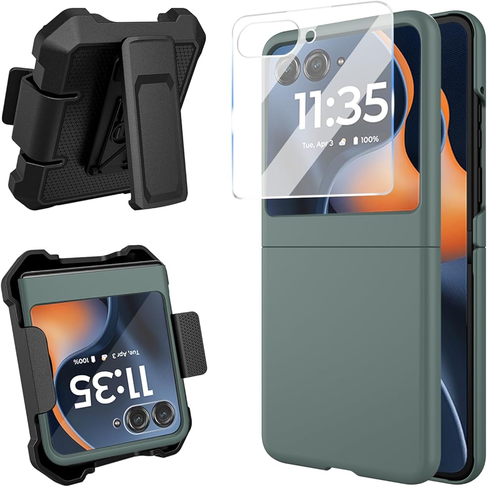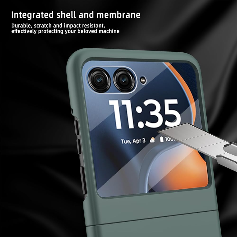 【واقي الشاشة المدمج】: استمتع بحماية شاملة مع واقي الشاشة الذي يوفر حماية 100 ٪ على الشاشة الأمامية. تم تصميم واقي الشاشة الزجاجية عالية الجودة خصيصًا لتقليل الأضرار الناجمة عن الصدمات والقطرات والخدوش ، وحماية Moto Razr 2025/2024.