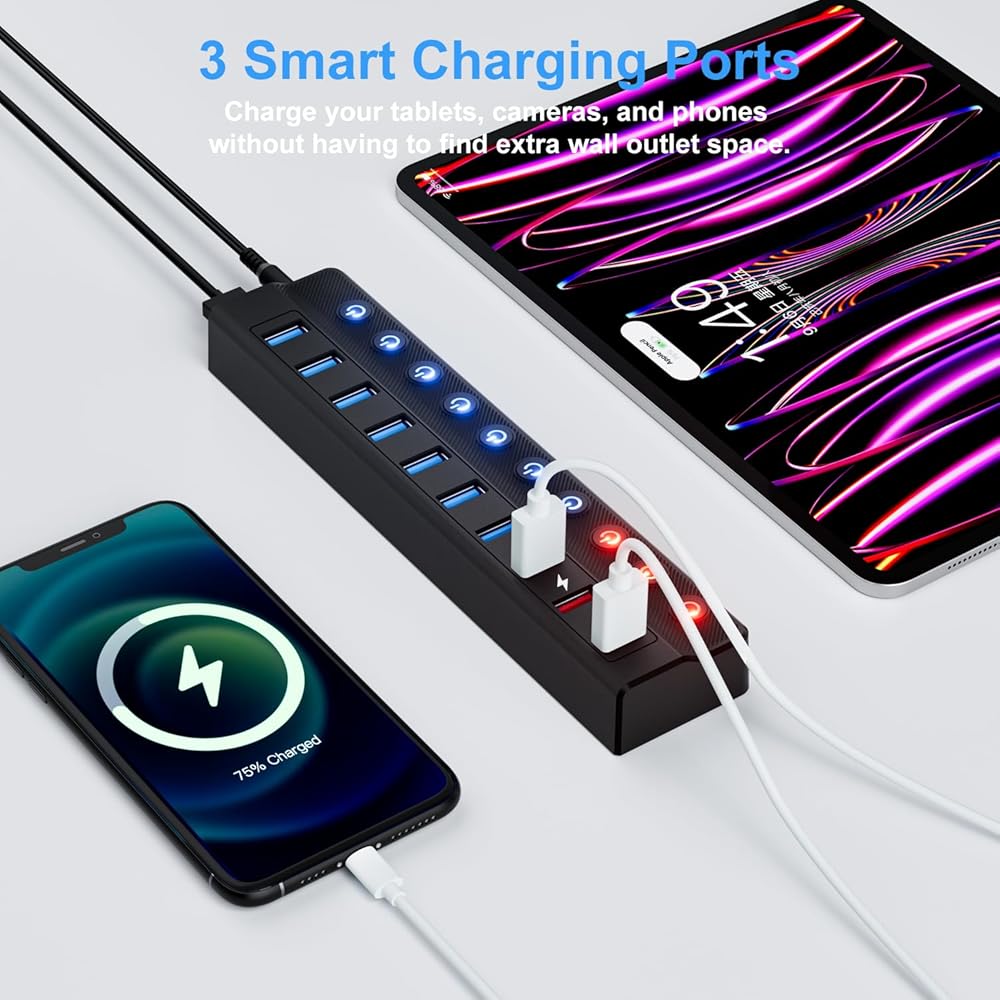 ONFINIO USB hub gives you 10 USB 3.0 ports for super-fast transfers up to 5Gbps.