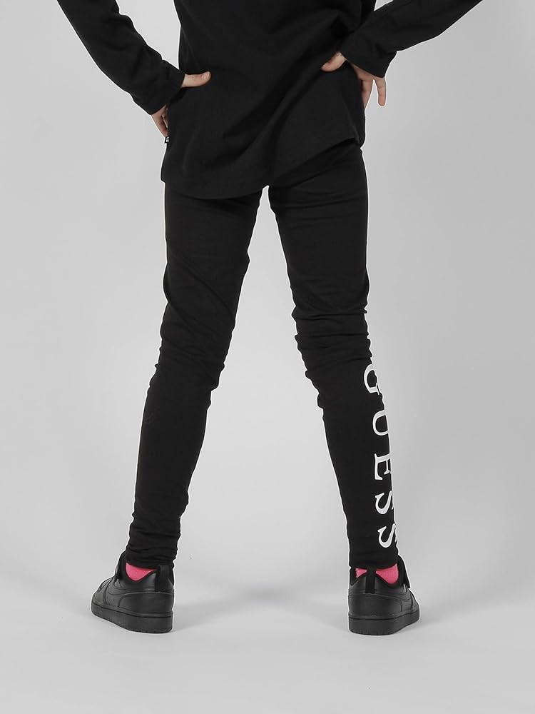 بنطال ضيق من الجيرسيه القابل للتمدد بشعار عمودي للفتيات من GUESS، أسود داكن، 10