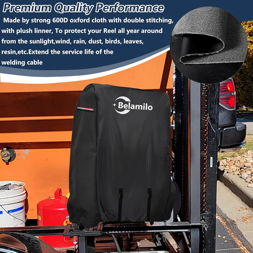 Premium Quality Performance: Made by strong 600D oxford cloth with double stitching, with plush linner, To protect your Reel all year around from the sunlight,wind, rain, dust, birds, leaves, resin,etc.Extend the service life of the welding cable