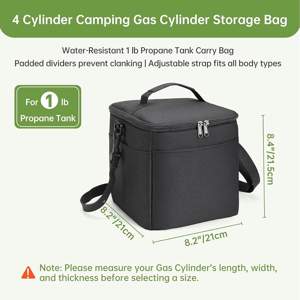 الحجم: 8.2 L x 8.2 W × 9 ساعة بوصة ، تكون الحقيبة الحاملة متوافقة مع خزان أسطوانة بروبان قابل لإعادة تعبئة 4 عبوات